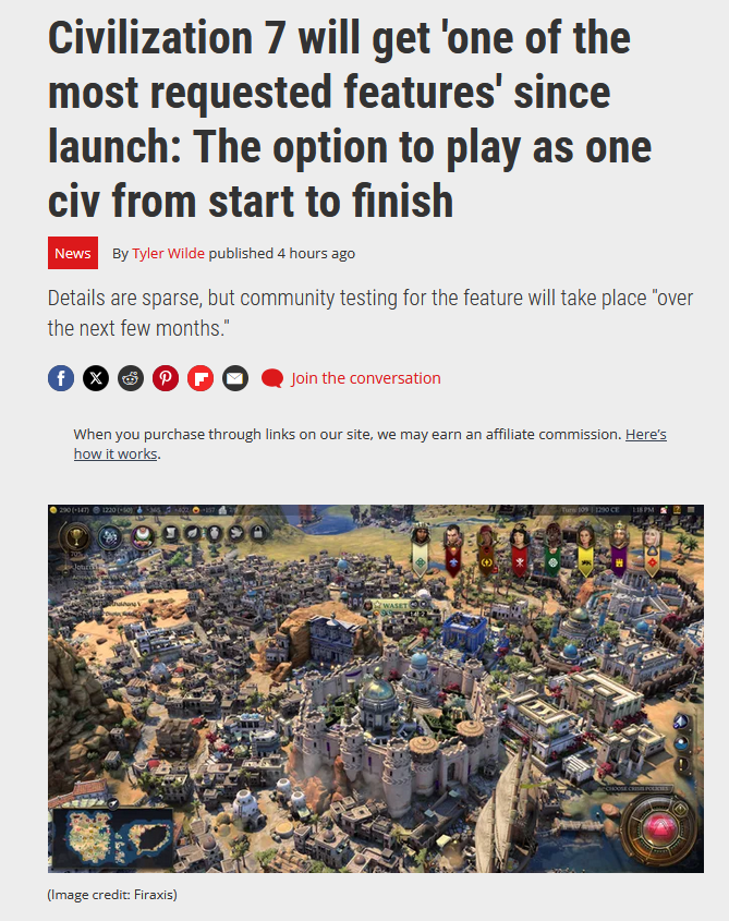 >>2188695>"one of the most requested features since launch" is something that was arleady a thing since Civ1 IDGI, was Humankind really this much of a threat for them to copy it 1:1?