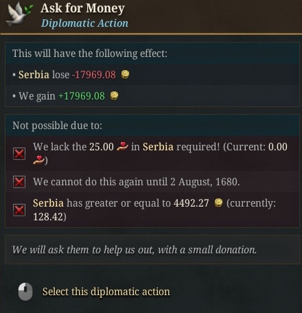 >>2228582fwiw i begged wallachia for money and later they were in debt, no idea if they were arleady in debt, for 260 ducats so i had to give them a little bit of money back until they would help me in a war