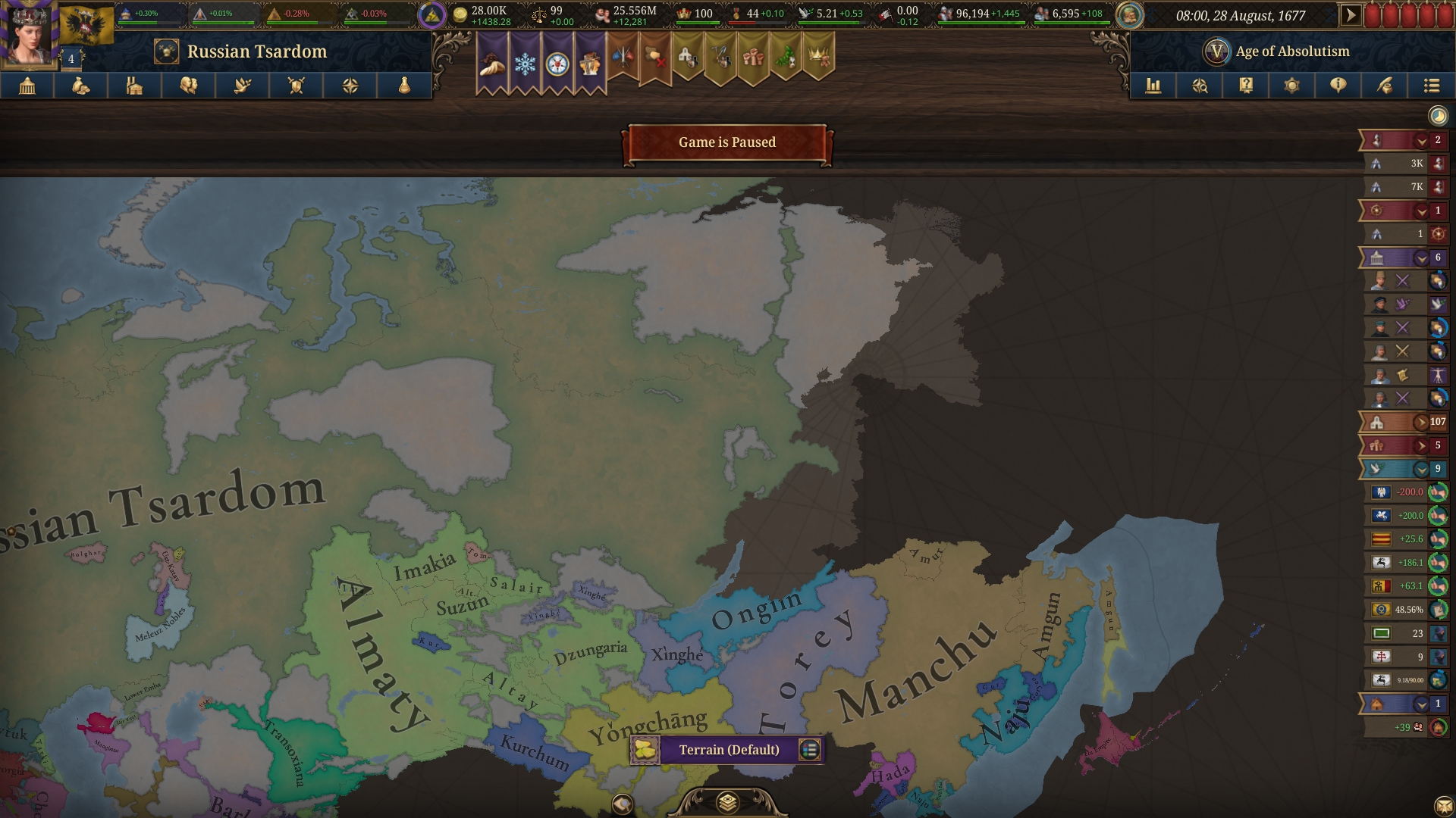 I got as far east as I can. Siberia is impossible to explore and no one owns any more maps of it. I guess I'll have to build an actual army and fight Manchu