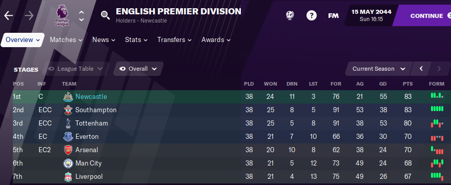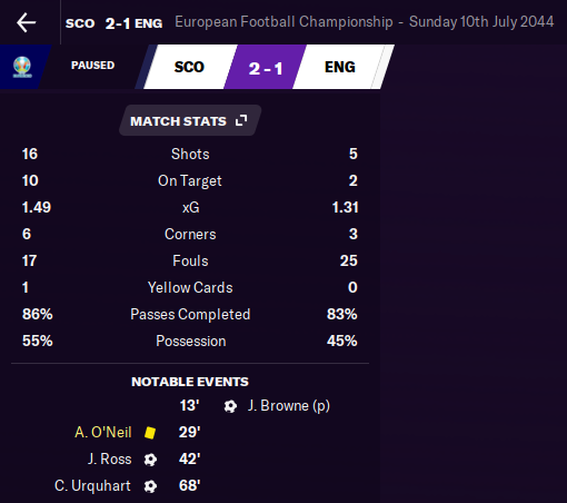 while i don't have a tonne of hope for them fixing FM26 any time soon the match engine stuff is really quite bad. i just won the carabou cup with a team that just got promoted to League One that was still using a lot of very mediocre National League level players. it's absolutely going to fuck the player contract AI stuff because they're all going to gain too much fame for playing in a european competition and make ridiculous demands for their skill level. makes me want to jump to a different team but my goal of the save is to just fill the Premier League with teams i like