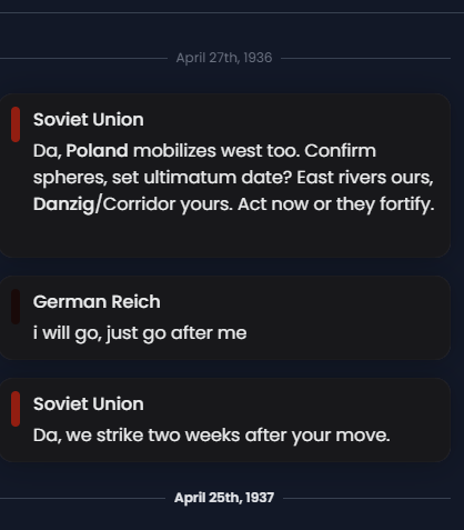>>2258528No, there is a free Grok model but it sucks compared to the one the paid one, also any free AI is termperory cause the dev are cheap fucks>>2258640Check the thread and see my other posts, but I will continue from here >>2255517 after the shitalian betrayel I invaded Italy until I arrived to rome, I was busy to fighting the soviets in the urals and building the archangel astrakhan line, the AI, assumed I was losing and started the endgame scenario for me, north africa fell, all of Italy exept the north fell, and the allies started a normandie landing, the good news is since the soviets are in a horrible situation (38 million confirmed military and civilian casulties) I managed to move army group south to defend france, they landed in the normandy and than in south france so I had to retreat to the siegfried line (I dont know how I lost Alsace, the AI just gave it to America), thankfully I managed to build a nuke and nuked london, wich forced the allies to agree to a 5 year ceasefire, I than got back to the soviet, nuked them 5 times, and started advancing because the soviets, are fanatic who will keep putting more men to the cannon fodder (AI logic geg), than I decided to keep pushing after colonising the eastMind you when America was invading here are the state the advisor said to me: Current manpower: Allies: 12 million men, Axis: 8 million men, USSR: 7 million men (38 million men casulties) Airforce: Allies: Overwhelming, daily bombardement of our industries, Axis: High quality fighter Jets, quantity is low to challenge Allied air superiority, USSR: non existantI feel like the allies just ignored Japan and focused solely on me, infact just after I launched the new final offensive to destroy the bolsheviks, an event popped out saying the american people are embarassed at the display against the germans and the nuking of London, that they want to sign peace with Japan and recontinue the war, like wtf? the AI give the border to france
