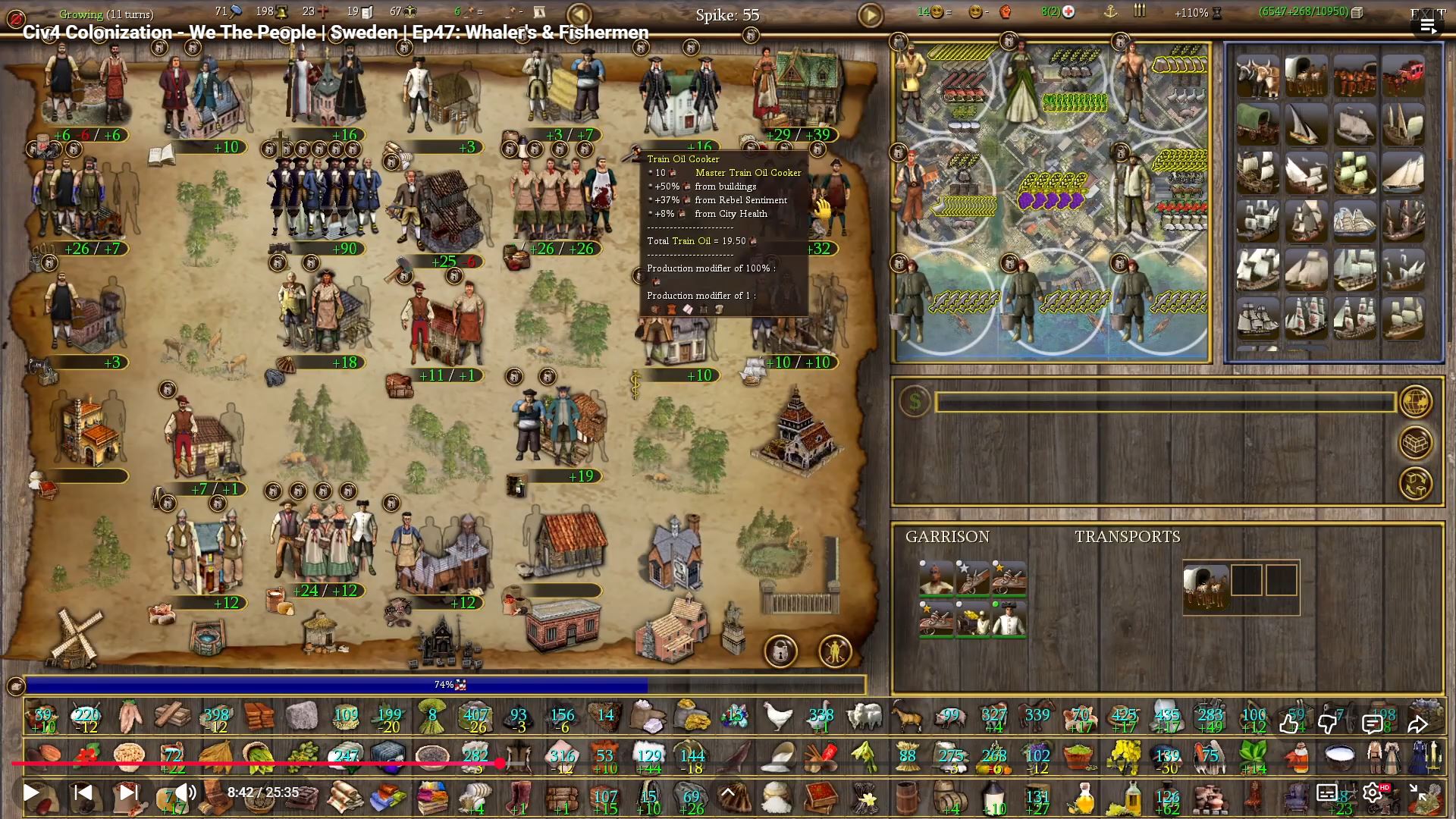 >>2287623Make a shitload of tiny coastal cities at the start. Even if it's one fag generating bells and you're going to abandon it later. Works for silver mining outposts too. Best value if you plop them on resources that run out for example coastal rainforests and swamps with ore or those you can't fully exploit yet like tobacco or cotton. The immigrants in europe are capped by your city number and labor free resources ain't no joke especially if you set them up in series of four and daisychain that ore or whatever to a central processing hub. Early tools and guns to sell, or use, are great value. Make your cities in series of four with 3 growers feeding resources with convoys to a shower with eventually a custom house and factories that ideally has a double fishery, deers or any other double food tile. Again, you're looking for high food output for free colonists earlier on and to sustain shit like tons of experts cranking out refined goods and hammers later. Even plowed rivers are acceptable. Start education early. Basic colonists have a chance to become expert thru working modified by total pop in that city, gov efficiency and if that tile is improved. So basic colonist working on plowed prime tobacco can become an expert in ~8 turns when alone in a teal city, ~16 in green and up to ~32 turns in regular white. Convenient if you can't import that kind of expert and all natives offer expert miners and sugar planters.Don't put horses everywhere since that cuts into your food production. 200 food = free basic colonist. And don't completely exterminate the AI. Leave a colony nearby, contain it with forts with dragoons and enjoy the steady trickle of new colonists from their beaten troops. Bonus points if you have a privateer or two nearby because the AI will import lots of tools and muskets and getting those for free quickly pays off the privateer cost with how expensive they can get lategame.