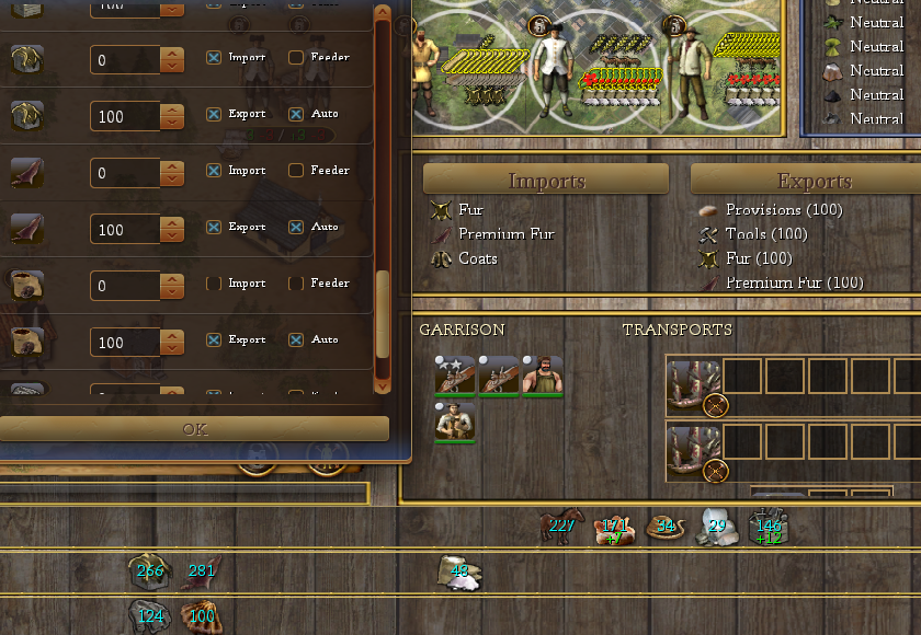>>2287623>>2288400Oh yeah and two more things you should keep in mind. It's almost always preferable to sell via custom house or either to natives or other colonies because you'll crash the market. When you do, and that's fine, just be prepared to pivot to a refined good. Furs suck? Coats. Coats suck? Don't keep at it, better send that fucker to farm or collect ore or timber which you'll never have enough later than sell them for 10 a unit or wait 80 turns for the price to recover.And DO NOT cut coastal forests if you can avoid it. Redcoats are much stronger in a standup fight but if you catch them in forests you get to have payback for what injins did to your graycoats for the entire game since your bluecoats have the same ambush terrain bonuses as natives.