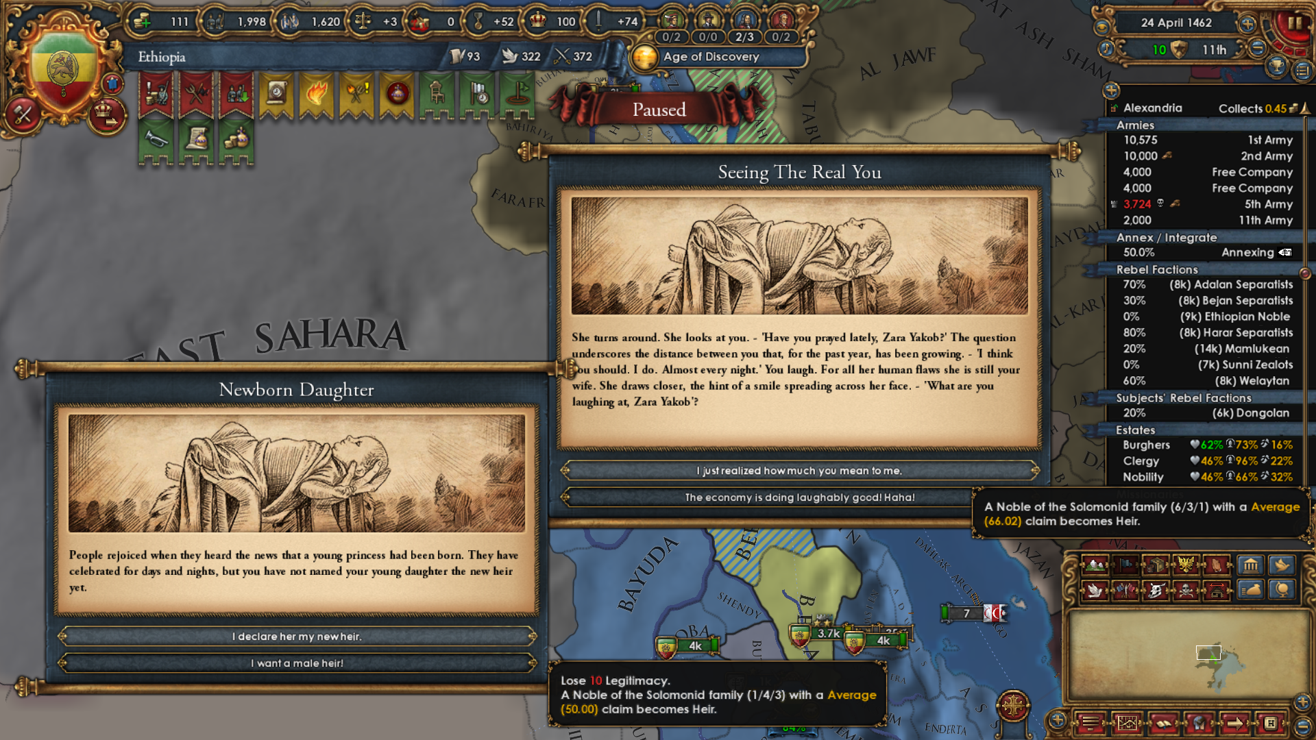 >>2301146Why haven't you gone for beja but all other sizeable enemies, also immediate stability events. Where did you move your capital btw?