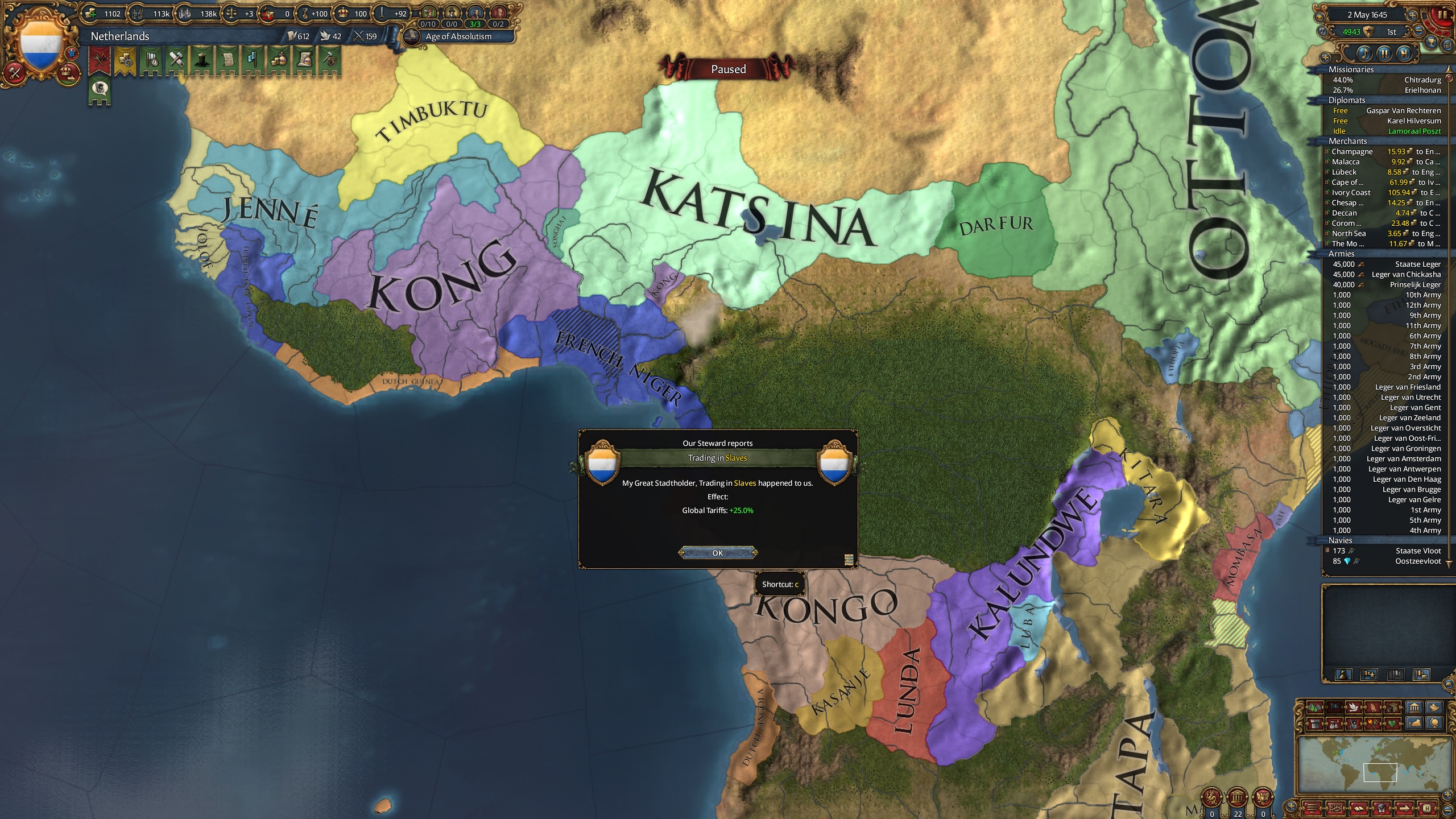 >>2313591Control your message settings, learn/set all of your hotkeys, put combat-relevant map modes (forts, supply, loot, etc.) in easy-to-remember areas, and start working with neighbors so you don't end up with strong neighbors able to deathwar you. Britain's doctrine wasn't just them being dickish.Also, you really shouldn't be fighting (directly) in West Africa. If you do, try using a vassal or march, or just use mercenaries like a colonial power would've.
