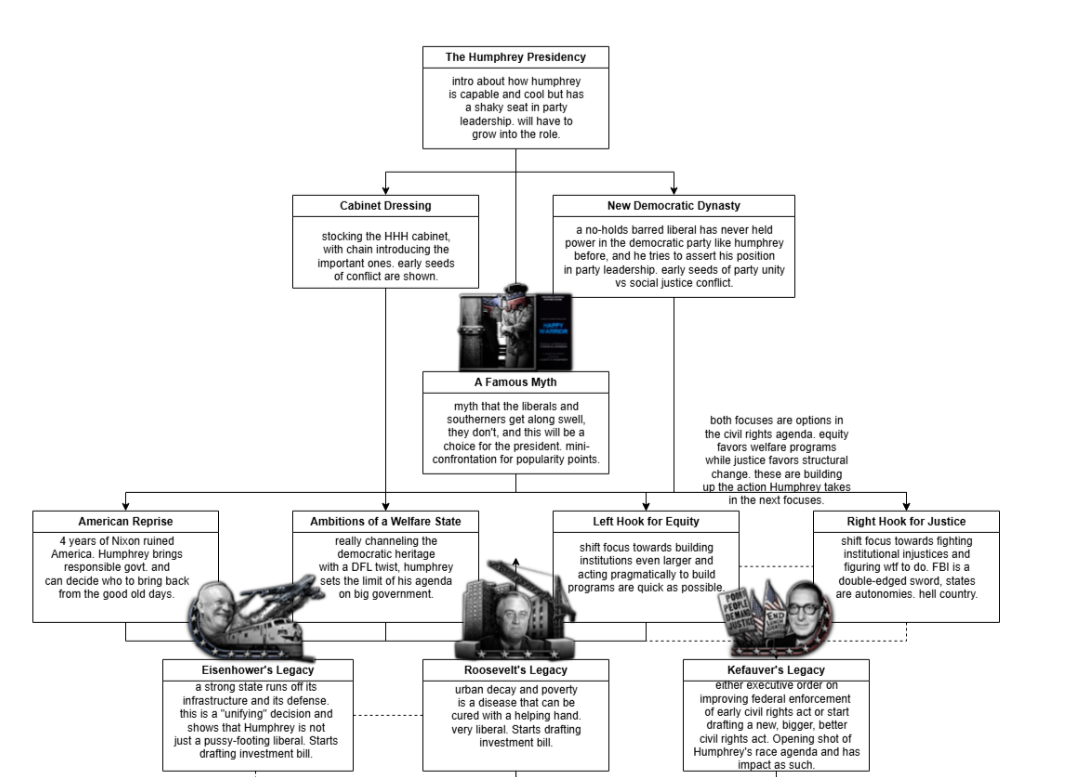 >American presidents were only the normie moderate liberals of JFK, LBJ, Humphrey for the Ds and Rockefeller, Romney and Ford, Barry Goldwater would be the initial leader but they changed mid-development because they became convinced he'd be an Axis sympathiser.