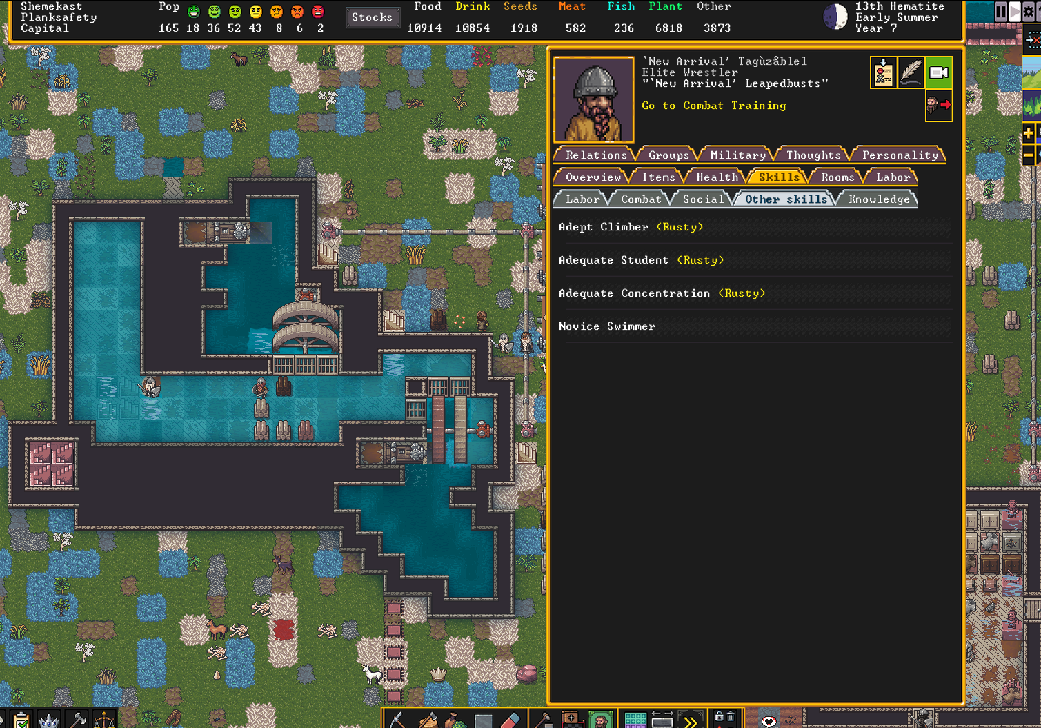 >Everyone is stuck at Novice Swimming but multiple end up with multiple Talented Climbers, Adequate Climbers and Adept Climbers.