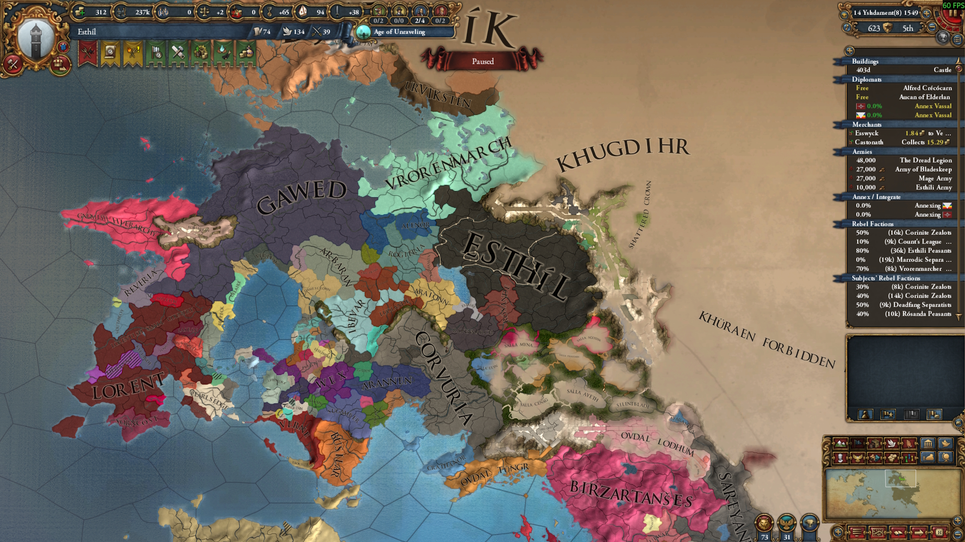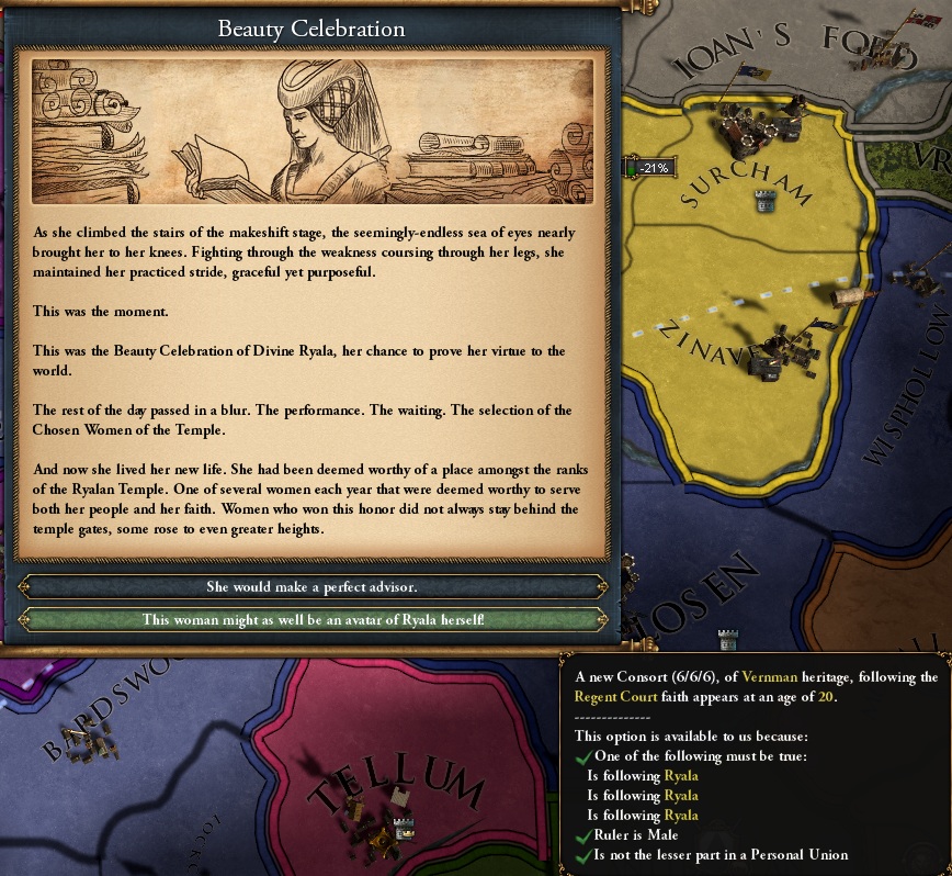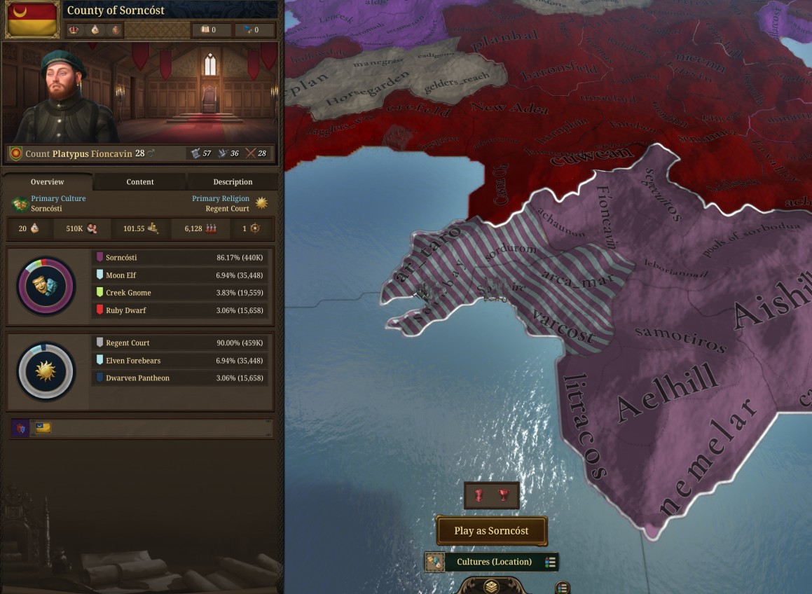 Personally, I would like to see the Lorent tag be sorta like Pheonix Empire, where the lorentish minors: Eilísin, rubenaire, wineport, derrane, wesdam, rubyhold and redglades all have a starting tree and if they for lorent they get a add on tree on the bottom but locks them out of some of their tree. Lorent itself should have it's own unique tree about trying to make everyone half elves buffing half elf as a pop and the ruby crown (totally not a phylactery). Lorent as a tag should also have interactions with rubyhold and redglades vassal interaction.