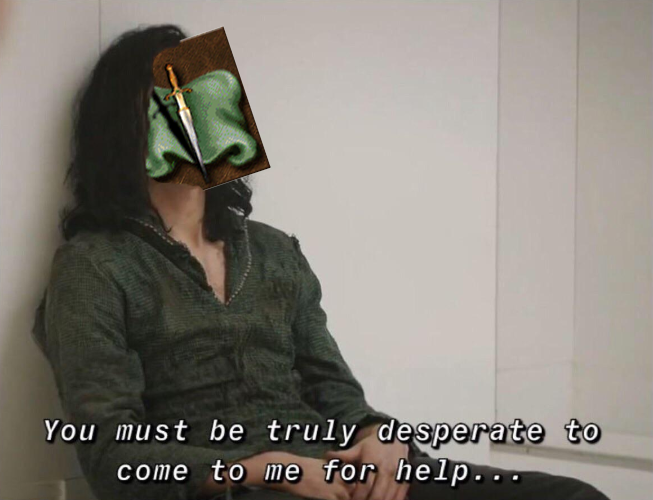 >>2314381>gimpThe outrageous outfit is probably just part of his guerilla getup as the member/leader of one of the most elite Erathian special forces unit, the so-called "Forestguard" along with the war paint/camo (tattoos?) on his body; they specialized in recon, infiltration and ambush tactics. Also, he's an orphan, so maybe it's just part of his emo phase he never grew out from. Or both. Gelu is a Mary Sue after all.>>2314464we don't know how far removed he was from Catherine, so we don't know how strong his claim was. The connection was never realized in the games, so it's irrelevant. Gelu did briefly see himself as a king of Erathia though, as he was going more and more delulu from the visions of grandeur the blade was giving him.