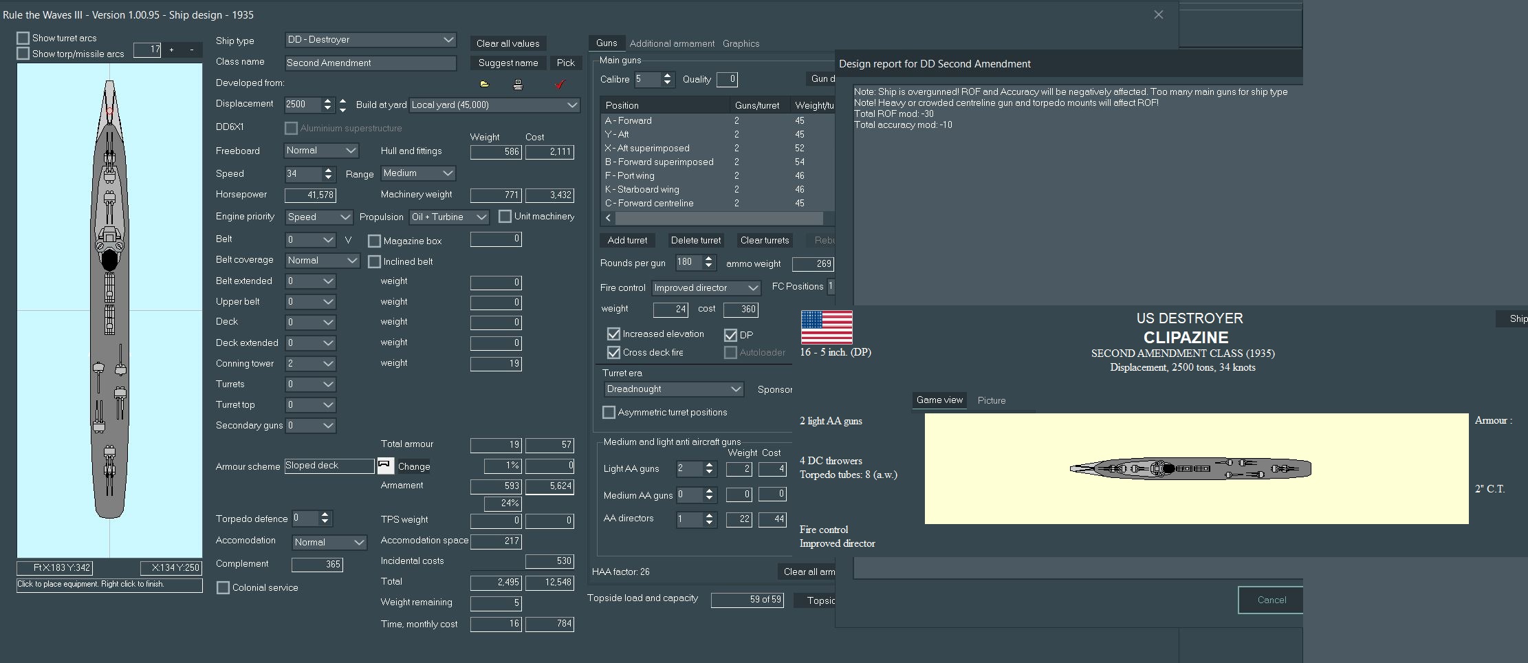 I'll admit, it's not exactly a legal entry, but it is technically build-able as Japan in the 35' start, pic related. It's a 1932 design that I used in my favorite run. I didn't have the tech for a long time to build 3 gun turrets up front, so I used the 2x3x3x2 design, and decided to role-play that throughout the rest of the capital ships I designed. It's the little stories and role-playing bits that get me in the game.