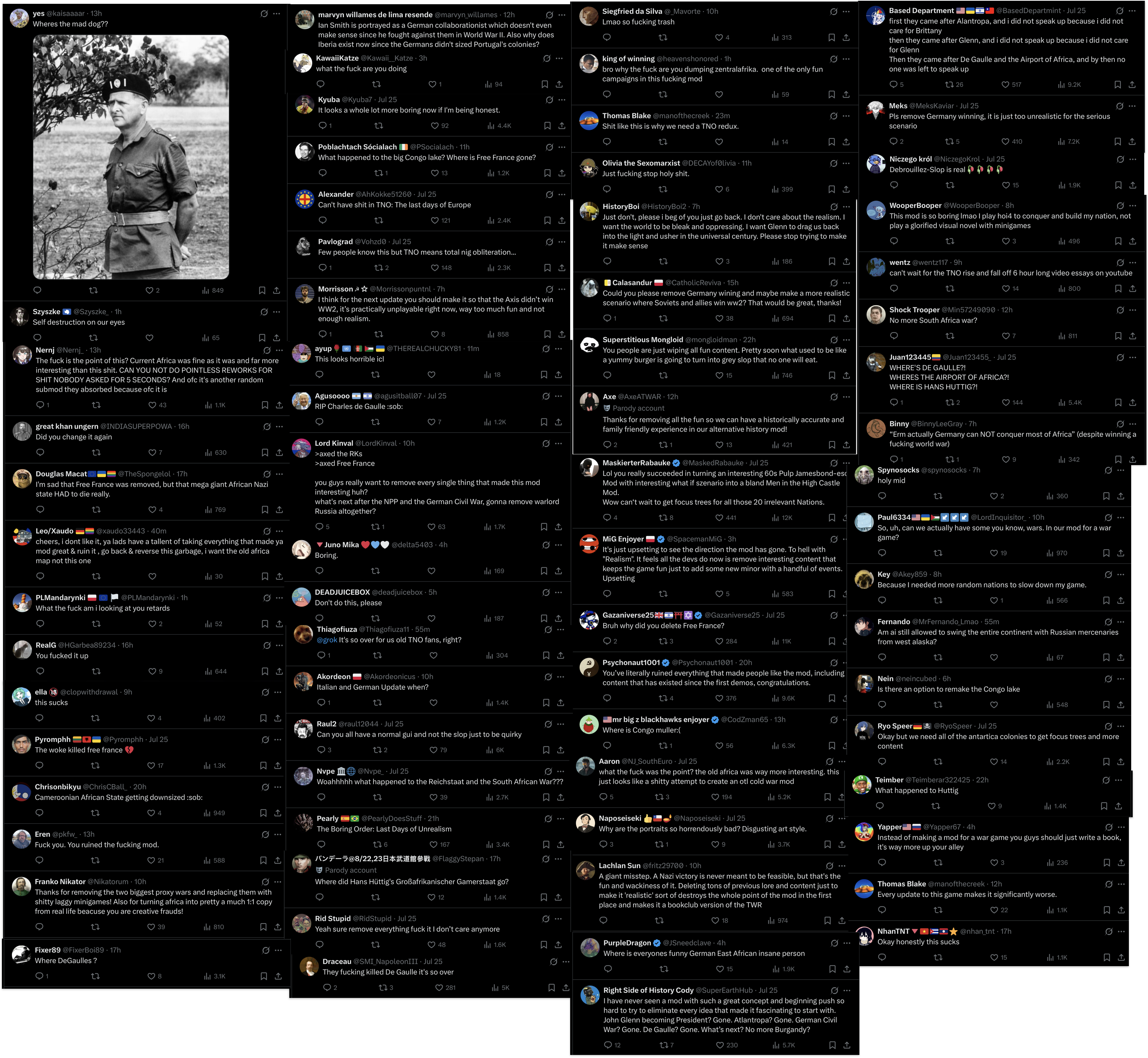 There's no reason to remove the old content just because its mechanical design and its writing isn't up to par. Both of those things can be fixed. German Afrika is very obviously rushed and dysfunctional through simple lack of time and review, like old Burgundy was. You can just play through it once to see this. It would probably take less than a month to fix up all of it. To expand on it would be no issue, either, if more involved gameplay is what's wanted. No reason to guarantee the Reichsstaat, either, the narrative doesn't preclude other paths and other nations don't necessitate it, so new paths could be added. Actually, there already is a deviation in the west. Concerning the writing, the story and the characters are already great. Very interesting, evocative. Also widely popular. Same goes for the actual events, the beats. The game-events are kind of repetitive, yes, and sometimes clumsy and one-dimensional, but to go over them would take a fraction of the effort of DV integration. Afrika never needed a rework, only repairs and touchups that could easily have been done at any time. The current state of it is simply due to the devs' apparent collective refusal to touch it ever since it was initially released.