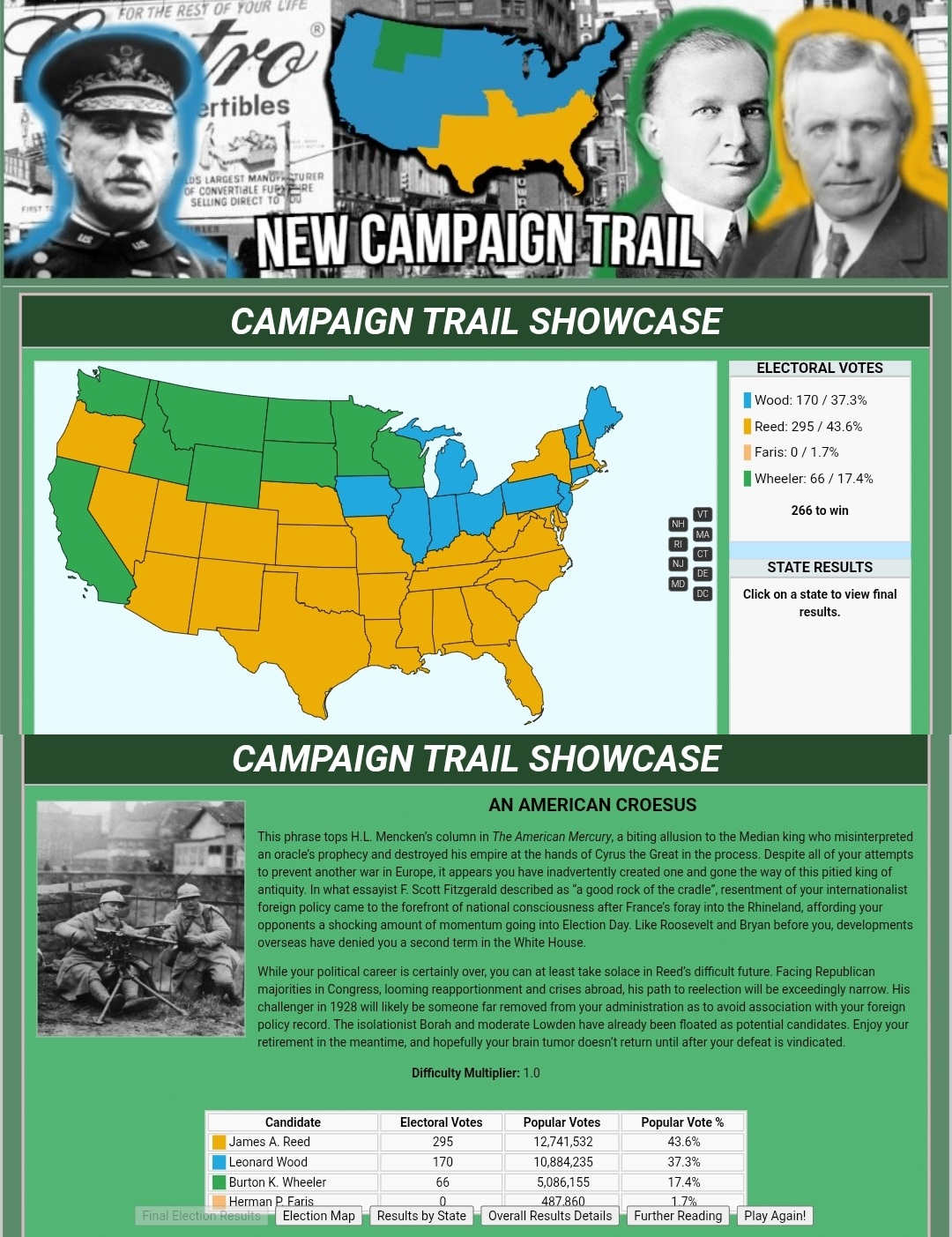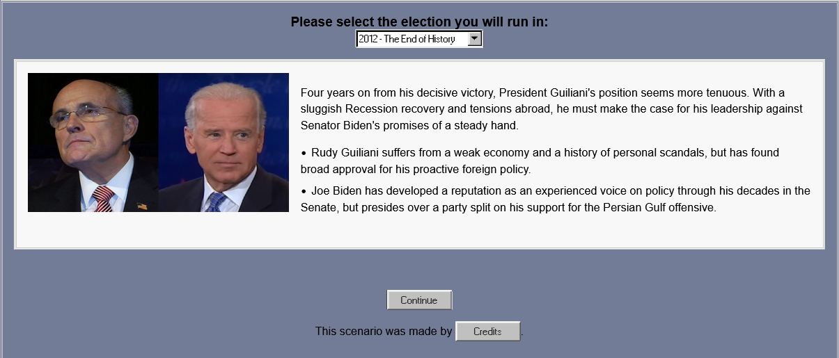 >>2343124Surprisingly no.There's the 1948 vanilla scenario. Which is one of the best from Dan Bryan. But they haven't done a incumbency simulator with him yet