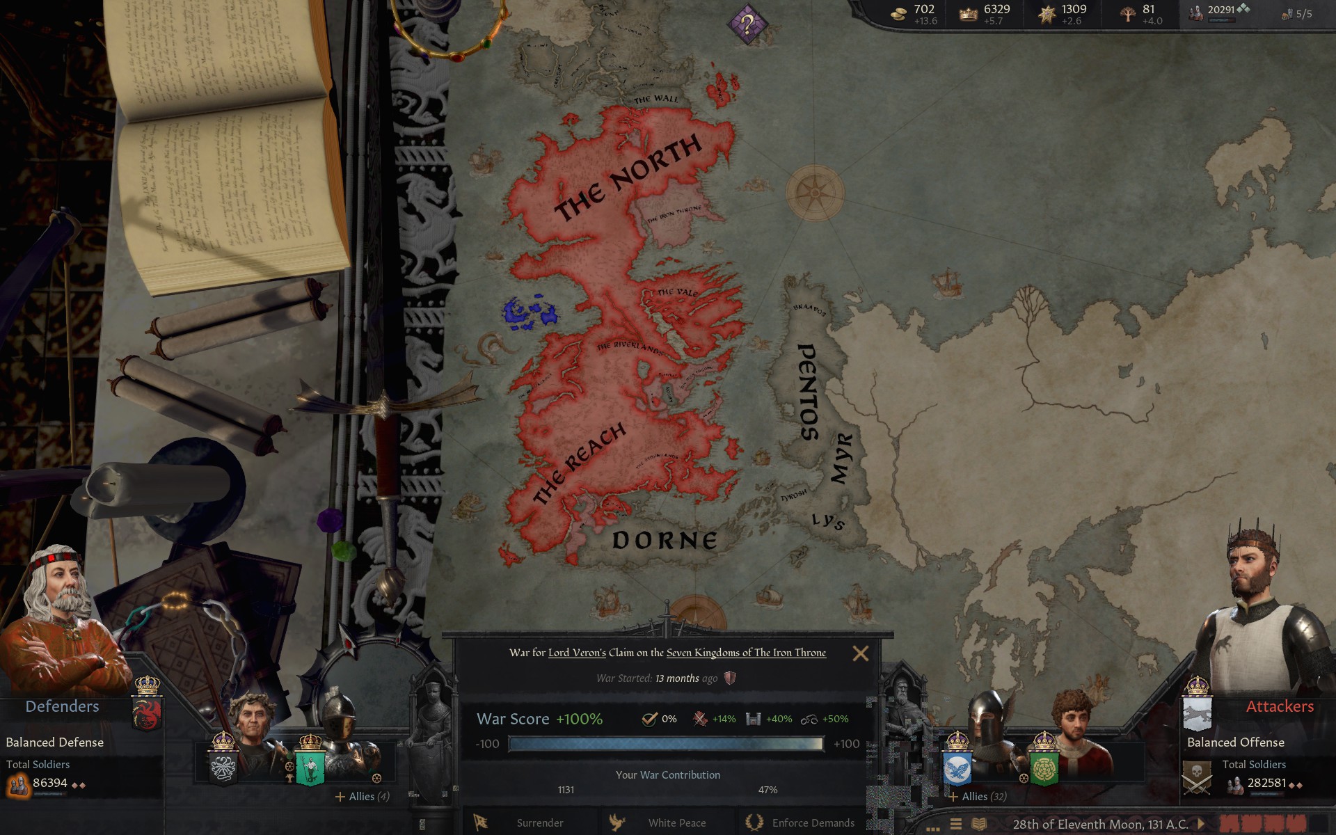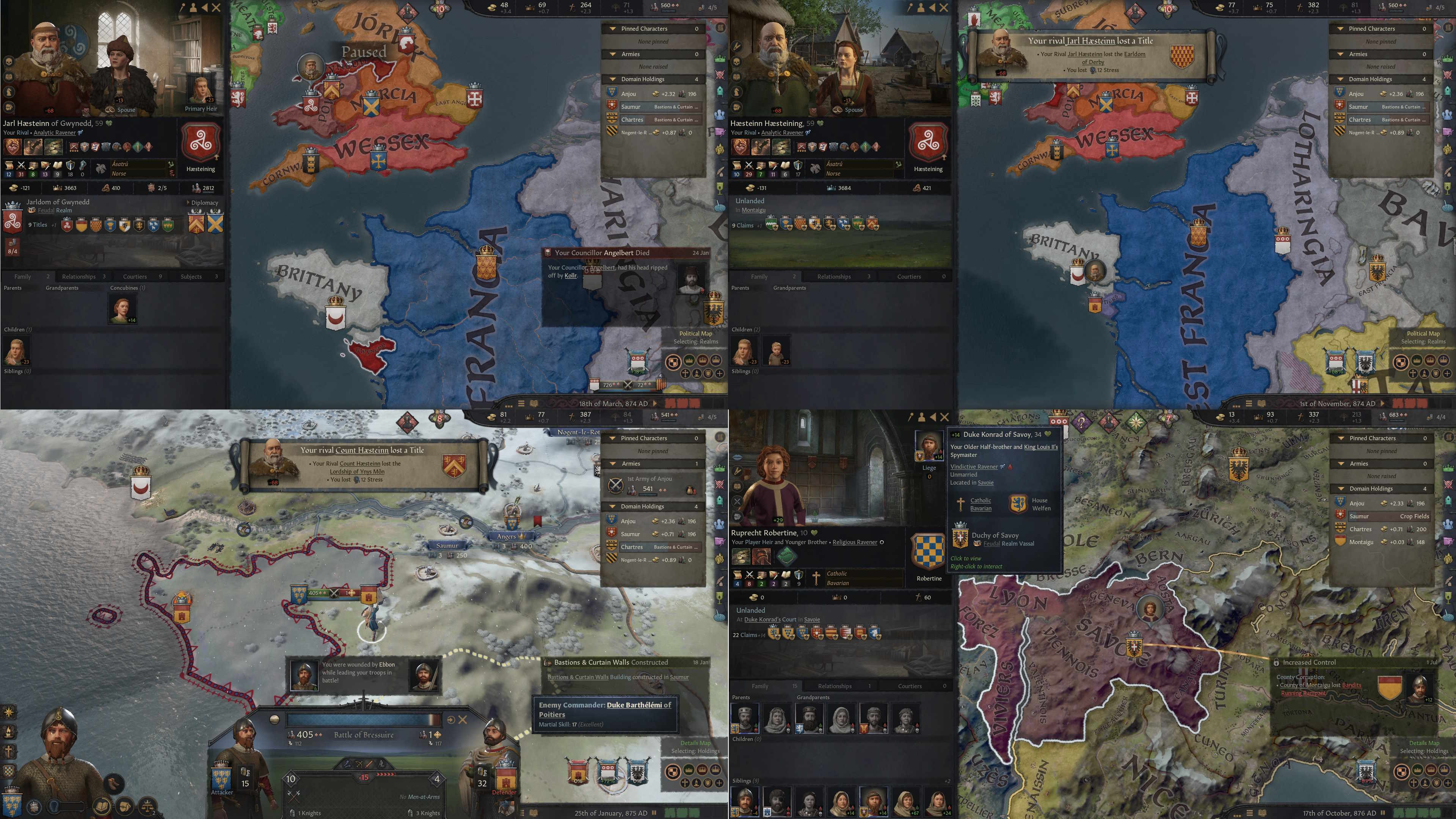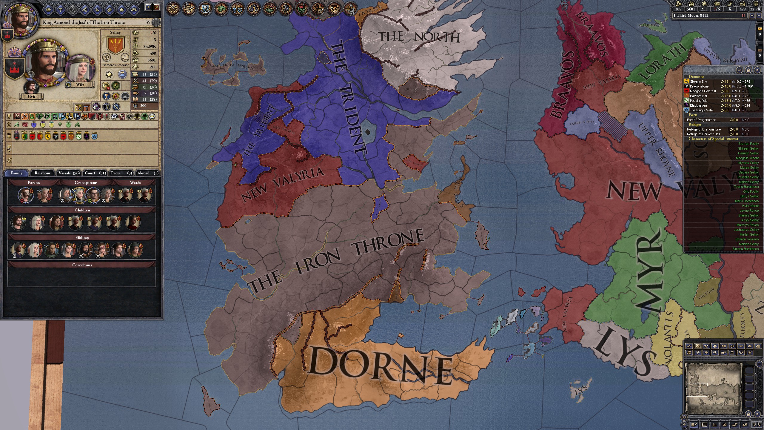 >playing as a Saltcliffe bastard in Reign of the Conciliator>wind up beating up my dad, taking his title and creating a duchy title (also called Saltcliffe)>run through all of Pyke's county titles except Pyke itself>in the mean time raid Dorne cause Jaehaerys invades for a Kingdom Title>massive Greyjoy war for Pyke (County) & Under Islands Kingdom>Honestly it's kind of egregious how you can cheese this war so fucking easily, the AI will strait crossing themselves to death with shit tier troops>manage to get Red Rain>have so many Reavers and Mangonels I'm taking most castles in 3 months>get Lunatic>manage to defeat the Greyjoys, they move to the Goodbrother castle>raid Essos>invade the small islands to the north of me until I can claim the Iron Islands>win a much easier war, now the LP>start causing insurrections by trying to revoke the Greyjoy's county title>wind up killing almost every Greyjoy until only 4 remain, two are women who are married off (one to the LP Tully)>other two men are brothers who I sent to the Night's Watch>every other lord aside from my kids who I gave Duchy titles are fighting me>during this the Tully's try to rebel and I try to break away but they get shrekt>have literally every other Duchy lord imprisoned>revoke all of their titles>give my literal infant sons and grandsons duchy titles cause why not>decide to run out the clock until my character dies>massive rebellion against the Targs, literally everyone against them and they're trying to put a Stark on the Iron Throne>break away, Aemon says lolwhatever then calls me to war since we allied at some point>send my army to the North>cheese Winterfell, capture the Heir and the wannabe Rob's wife>turn his wife into my concubine, Aemon presses his demands>Aemon dies like three weeks later by being incinerated by Balerion>an aside the last true Saltcliffe that isn't 50 and barren is my great niece who dies beyond the wall