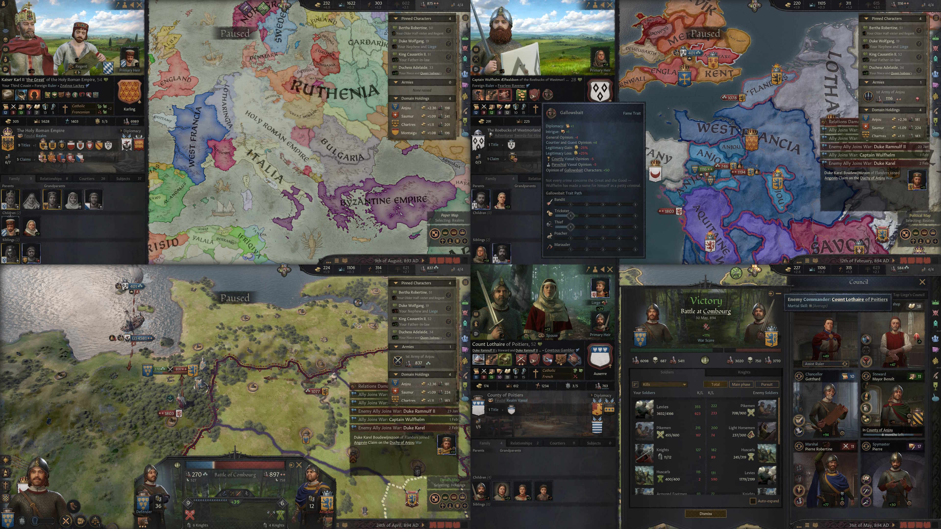 >>2350719I will strongly recommend CK2, if you actually care about the strategy part of the strategy game.Obviously the game itself is still very good at the larp aspects, but it rewards you more the more you engage with the dynasty management/realm building/intrigue systems.The map is also a lot more textured because of how different the religions/governments are and the regional mechanics (merchant republics, trade roads, nomads in the steppes)