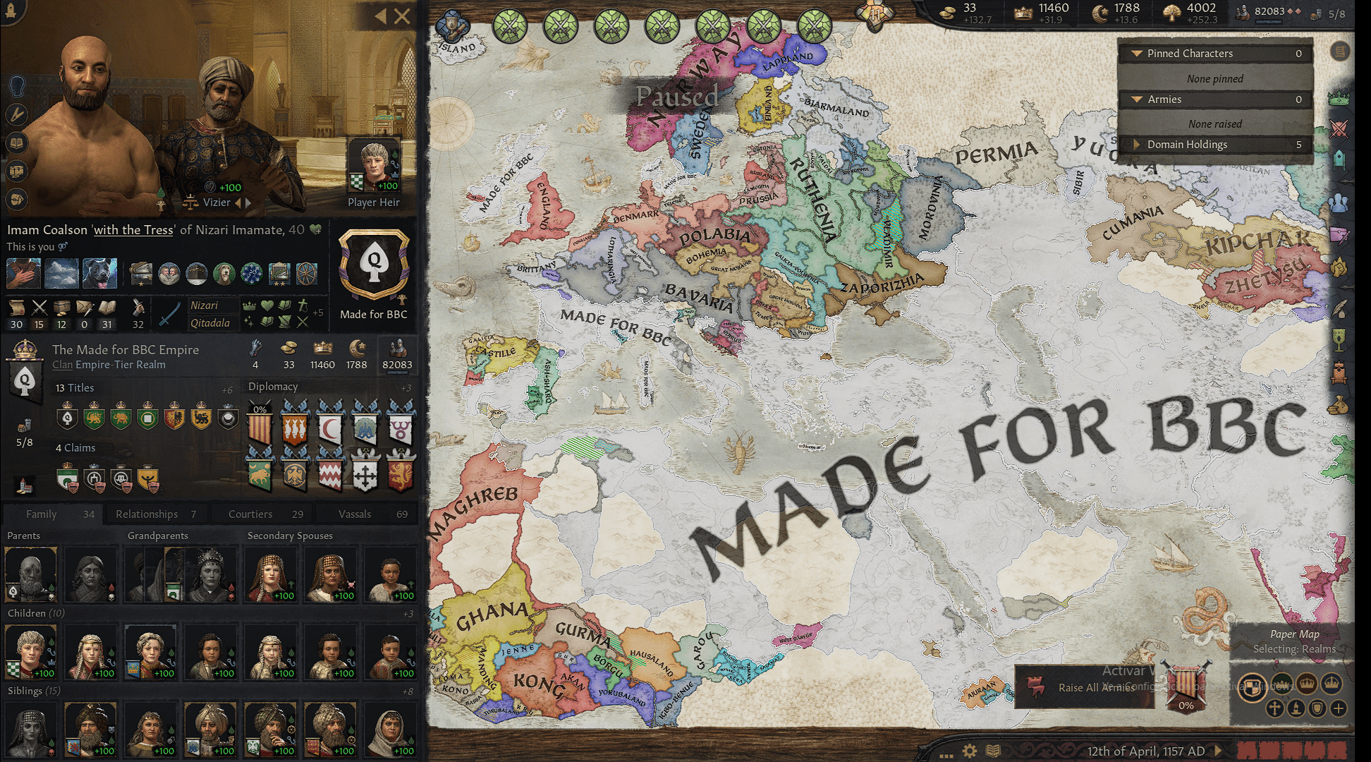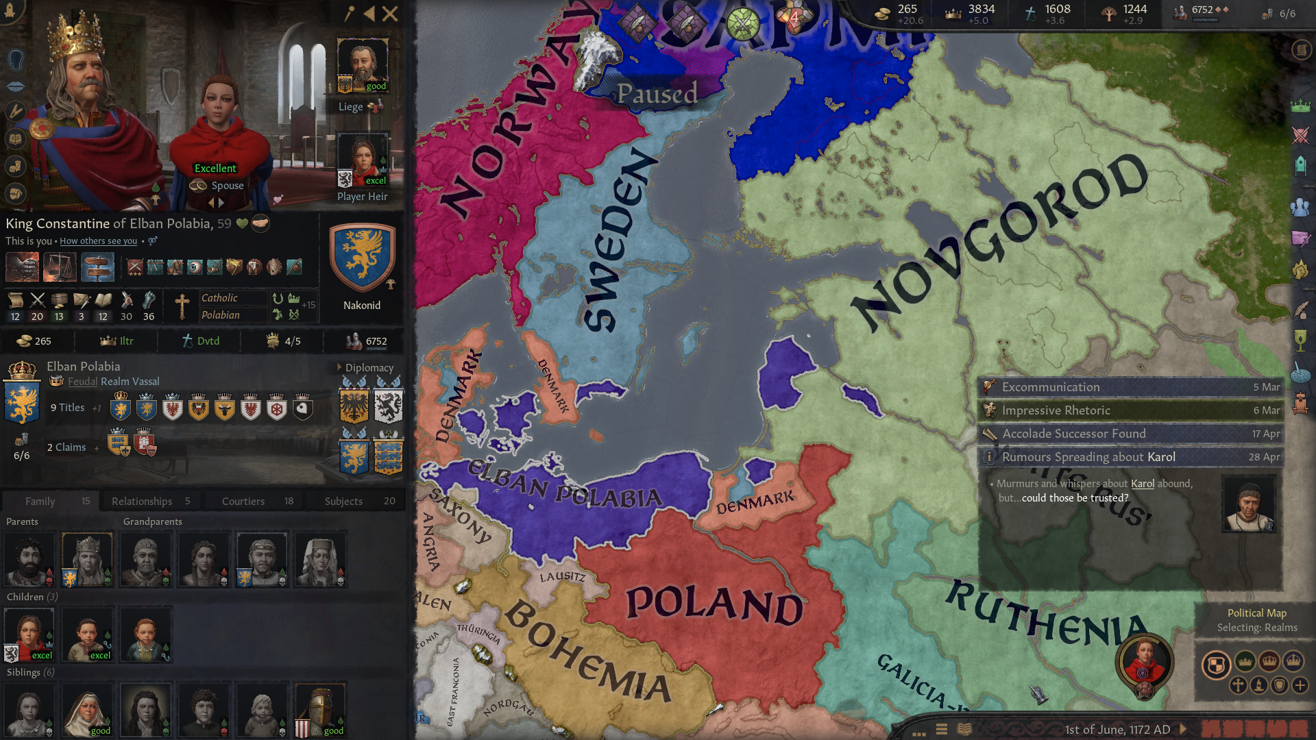 Reinstalled after a while and after a couple false starts, finally a proper run (With RICE, Merchant Republic the Papacy expansion, ObsCKure)This is Liubice (Lubeck) in 1066 with RICE, which are basically the Christian Polabian sons of St. Gottshcalk, who get kicked out by pagans, and you have to reclaim Polabia and kill Krutoj.But you start with an Alliance with Saxony so killing both them and Luticia is cakewalk. Problem is you are poor as shit and start with no MAA, so good luck if people decide to raid you. Also the Elbe floods. Budivoj is also not a great character, at least he has learning so he can maybe get the theologian line as starters so you can quickly convert.But with some luck and some Normans I survived and later formed the Kingdom. Though only on the second character (Budivoj's only taughter, an absolute Mary sue girlboss with like 30 Martial and 40 Prowess at one point), cause I was slow with my conquests and I needed also to kick the Swedes from Pomerania (and why Danes own Prussia and I only that bit of Latvia).Well, I had managed to bring the Baltics under tribute (which is probably from some mod somewhere, but makes sense), but then Novgorod got a Great Conqueror and kicked my ass out of there (cause my children kept dying and alliances fall apart). They still have that great conqueror, but they haven't done anything probably scared of that big hor to their east. I'm more scared of Genghis, so I, for a couple of reasons and also lore, cause this character married a German milf, joined the HRE. I don't think I am getting Baltic Empire any time soon anyway, plus I could join as a march and with war priviliges.Current plan is to conquer Denmark and to hybridize danes, a couple traditions for Polabia are useless and I want Huscarls and Seafarers for free. Also try to bang courtiers cause I have seen more miscarriages in three characters than my entire 300h of playtime.