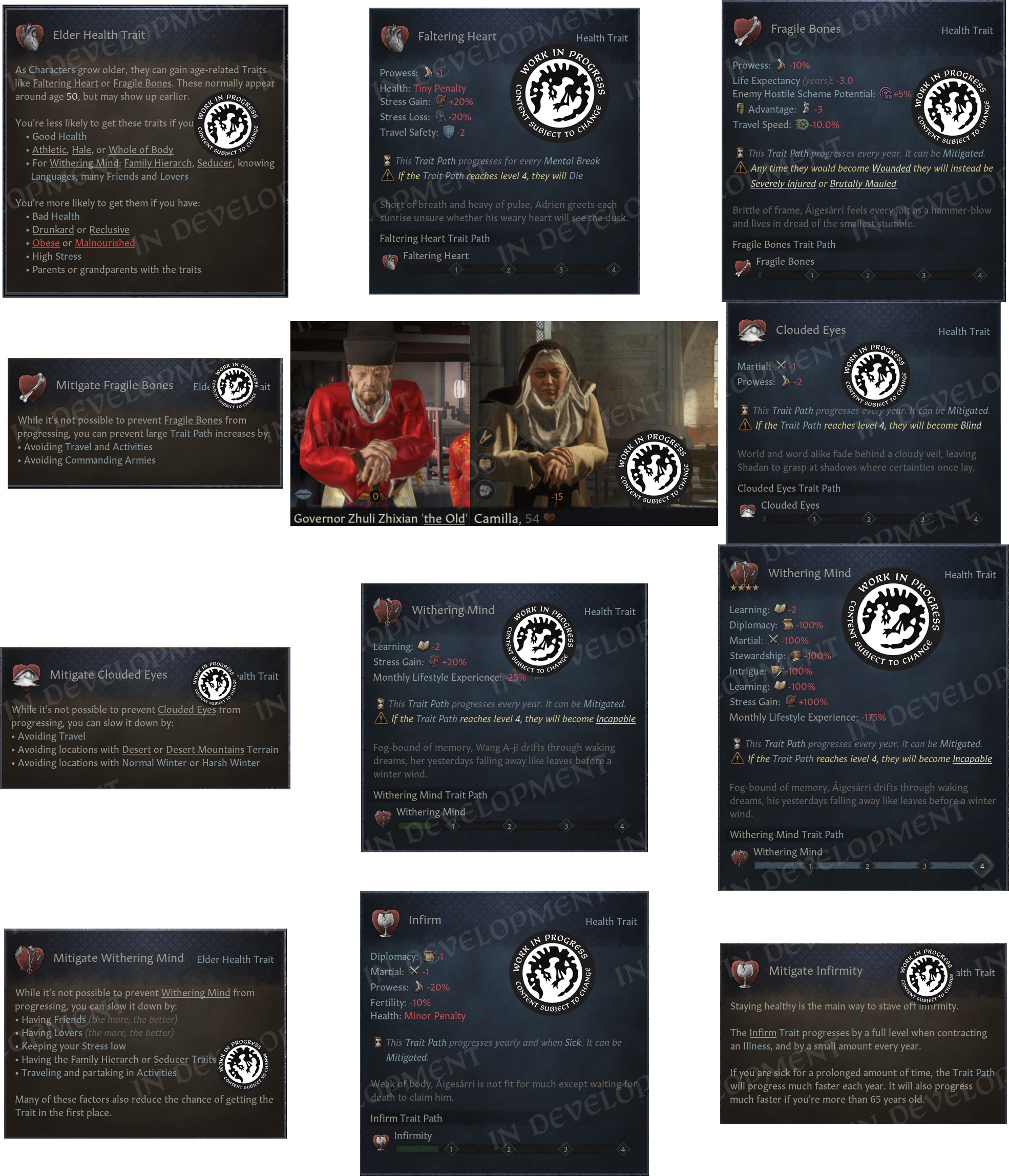 >>2367365What's the point in just adding extra debilitating illness bloatware like this to the game for extra micromanaging?Was "Infirm" not enough of a 'catch-all' type of trait for old age?This is actually retarded. I could see it being somewhat interesting maybe first or second run but if you start seeing it over and over again on each of your character, it would just get super annoying. I think I'd just end up going out of my way to have them kill themselves more often or just put them in a dangerous situation or choose the most dangerous event option possible just to have them killed as soon as possible so I don't have to deal with these traits that have massive downsides.There seems to be a game rule option that allows you to disable them at least, and makes it so "Infirm" is the only trait that elder characters could gain, just like before, but it's still retarded nonetheless and it's going to be activated by default.Maybe it would be interesting if it spawns on AI rulers and that gives you more interesting ways to go against them, but otherwise, this just seems like needless bloat similar to how some mods like that ChatGPT flavor pack adds hundreds of needless and random retarded personality traits and whatnot.