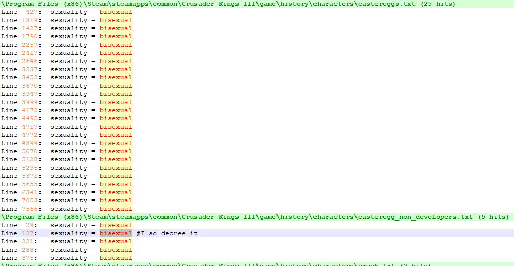 >>2366928You should've always done that. The woke crap in EK1 and 2 that they shove in can easily be modified out as long as you're not illiterate and are capable of tweaking a few lines. I did the same for ATE in CK2 when I removed the homo/bisexual trait, the ridiculous female clerical church in Canada and some other minor things I've forgotten.