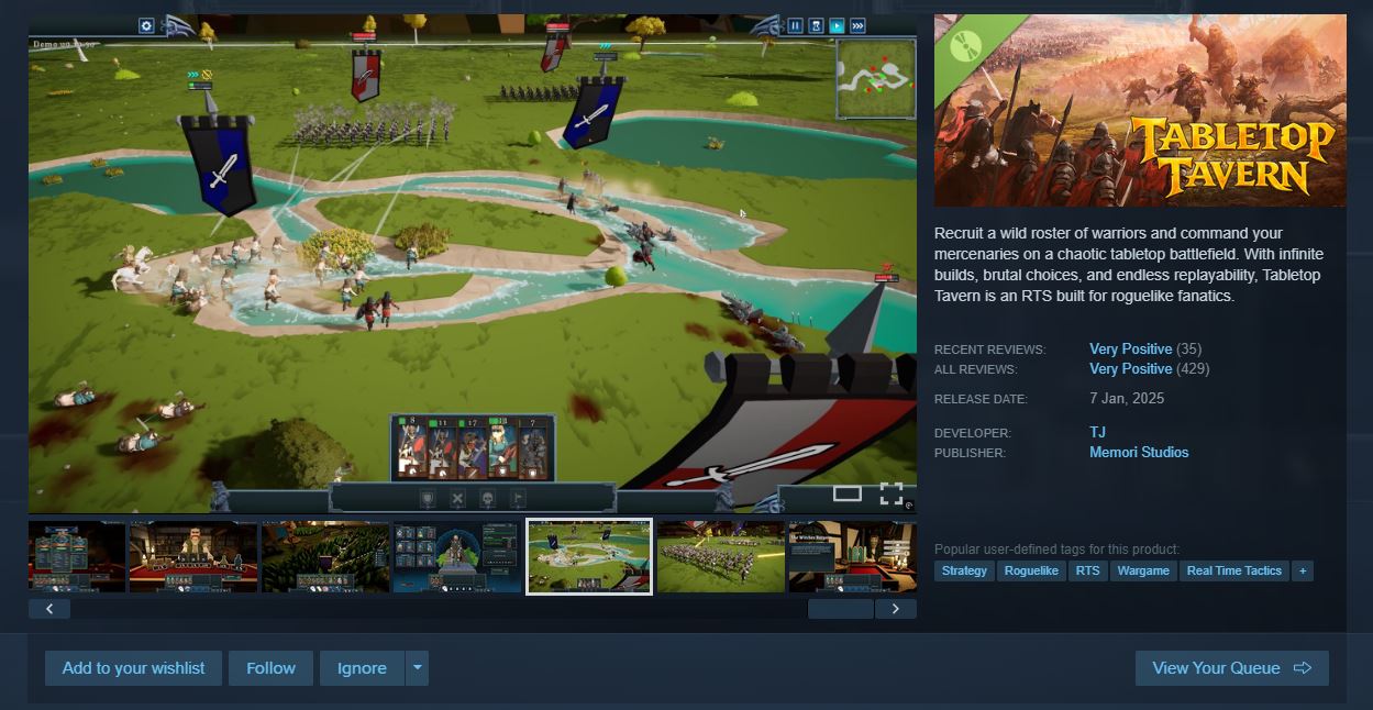 Playing Tabletop Tavern at the moment. Pretty fun if you like total war (in particular Warhammer TW) and roguelikes. Basically just the same as SOVL but real time rather than turn based. I could see it being fun for a while.