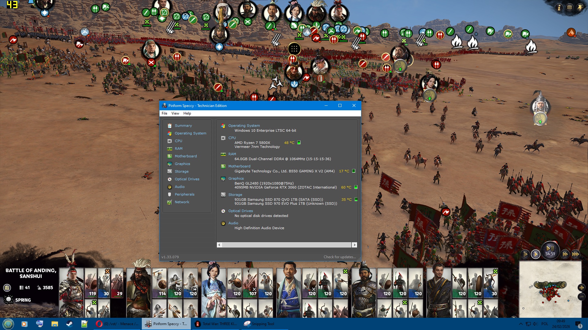 there is like 7k+ troops on the battlefield and its getting choopy but temp is like 60C+ on high(70C on ultra)