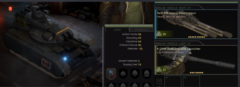 >>2357544lol I went the exact opposite way. All vehicles all the time, with only Darby as an infantry scout/spotter/sniper/objective claimer, with a stupid high concealment score so she doesn't get shot at ever.I still have a bunch of infantry squads but they rarely see use anymore.