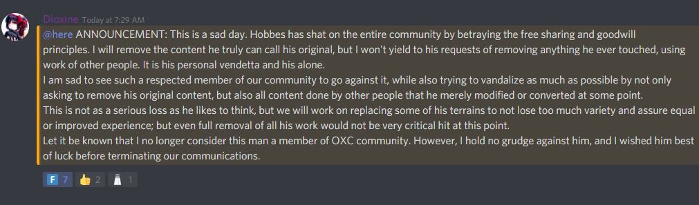 >>2361511Honestly dioxine and solar literally made a "we have resources packs at home," version and hobbes got disliked in the community. Fortunately its realitivly easy to make that shit though.Still cost like 3 months of piratez dev time but people still hate hobbes for his bs.I don't think it would happen again though, both because its kinda social suicide, and because the community wouldn't want it to happen again and would probably prevent it.