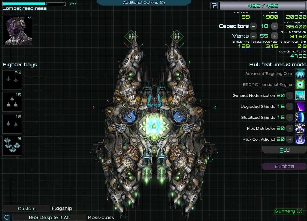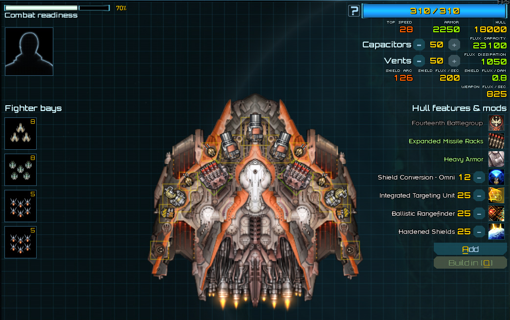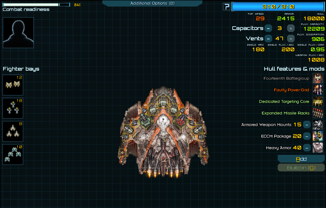 >>2366062Hardest part of executor is dealing with the flux, hope you have ordinance expertise. Sacrificing some mounts to put some really low flux cost weapons like gravitons, ir autolances or arbalest cannons helps a lot.