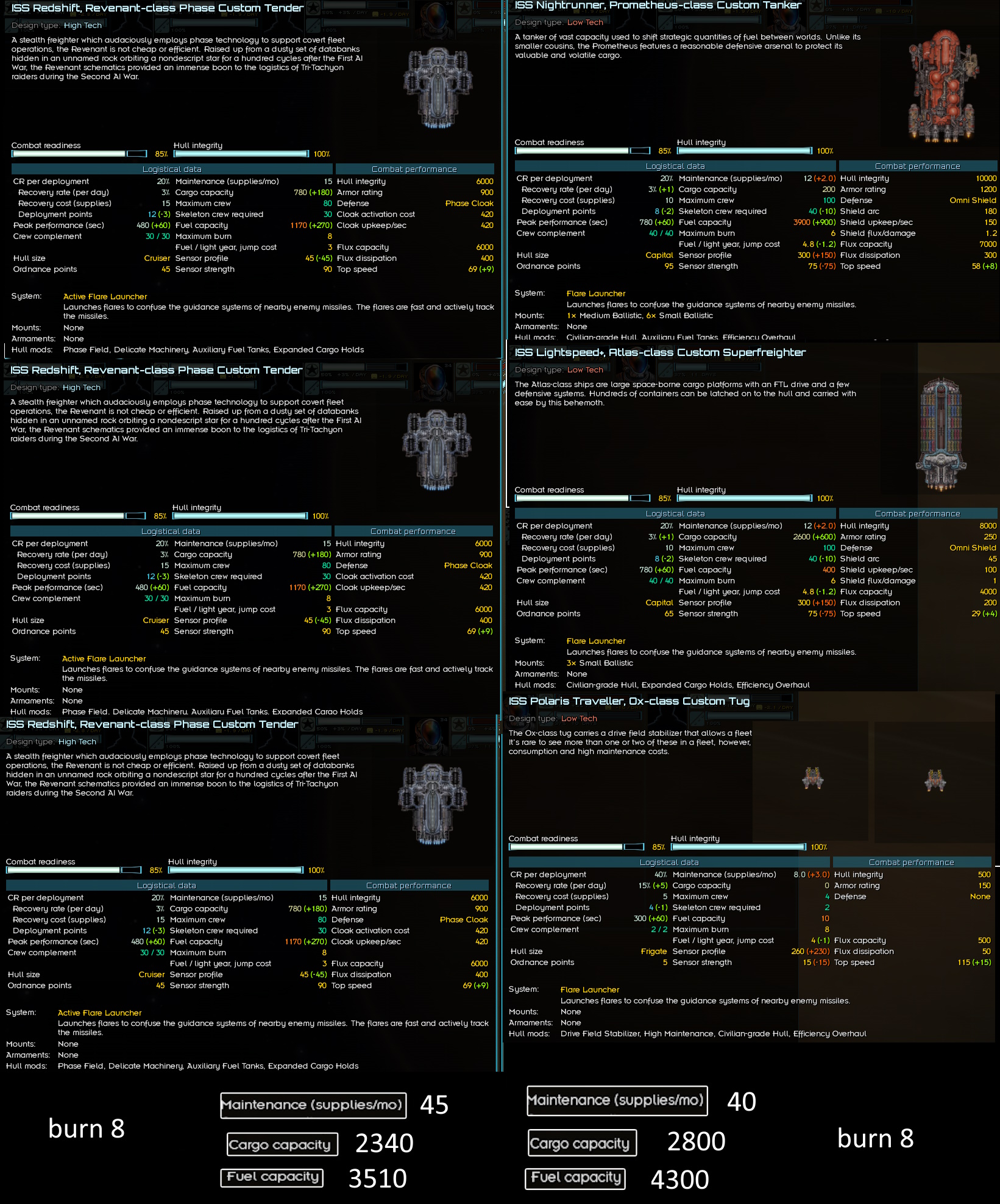 >>2359542I dislike how heavily the mod favors combat skills and completely shafts everything else. Very little if any skills based on colonies, and all the logistics officers are straight up inferior to vanilla. For example the most you can get is +2 maximum burn level with the specific officer, vanilla you can get +3 base burn level(+6 max burn level) for civilian ships and +1 base burn level(+2 max burn level) for everything else. Feels like its nothing but just combat modifiers