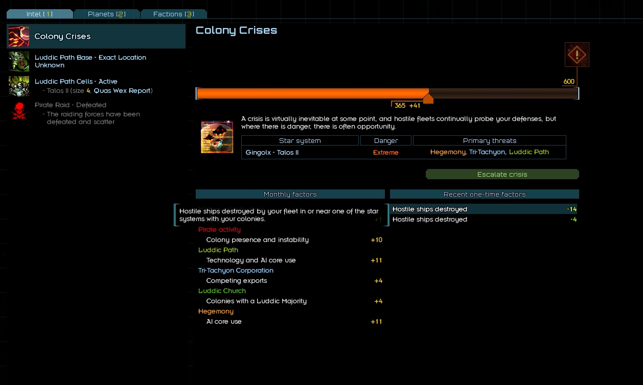 >>2359367Nah, if you have the capital (I recommend 1 million credits to make sure you can get started quickly) you should go ahead.Alpha cores make colonies WAAAY more profitable so I highly recommend using it.Colony crisis are very much overhyped. Pirate crisis is super easy to avoid, pather fleets are easy to kill, the Tri-Tach crisis has a cool way to be solved without having to fight too much, etc.The Persean crisis is probably the most overblown. They launch a whole bunch of fleets at the same time but they are not initially hostile so with just a bit of clever maneuvering you can take them out one by one (you only have to kill a few).Hegemony has three tiers of crisis iirc, of which onnly the last one is threatening at all.Luddist church has one of the harder crisis since Invictus are a mess to fight against.Crisis are not something to worry about, if anything you should seek them out since all of them give you a huge bonus to all your colonies once you defeat them properly.I recommend building an orbital station in all your colonies (yes, all) and upgrading them to the max level as you get more money. The extra stability is well worth the upkeep cost and they will make your colonies basically impossible to raid by pirates while also providing a huge advantage on top of your warfleet in case a crisis catches you unprepared.