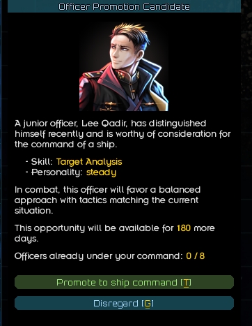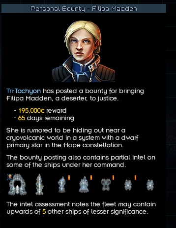 >>2359580I just wish Alex added more complex random quests. There are very few repeatable mission types with few variants. You haul good to a planet or collect a bounty and you have done them all.Instead of trying to add predefined story missions, I wish he would take those ideas and try to figure out how to make random dynamic missions that are on the same quality and scope as the story missions. And also a way to chain up dynamic missions to generate new story arcs.Off the top of my head something like>Heg hires you to plant a spy pod near a League planet>you have dialogue options and maybe have to spend a story point but you can figure out the Heg is planning a new campaign>you could tell that to the League>let's say you decide to just set up the spy pod>you can then collect your pay and go do something else OR within a limited time if you go back to the officer that gave you that mission (or someone higher up on the same system) they can order you to interdict convoys going to that League planet to starve them off supplies>once you do that you can go back and get told that the Heg is preparing a warfleet to attack that system>you get a new contract to move in and help out the Heg in battle>add more dynamic dialogues and options from a pool large enough that can be combined randomly so that the possible permutations ensure replayability>like the scenario could be played straight; or maybe this is a plot by a turncoat Heg officer who's a League asset and the Heg fleet is walking into an ambush, and you can stop it (or not); or maybe the Heg officer conveniently decided to send you against the brunt of the League fleet to draw them out, uncaring what happens to you; maybe the League hired out mercs to harass you on the way there; maybe a combination of 2, 3 or all the above etc.