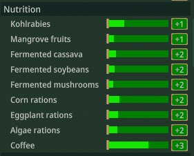 Average happiness is annoyingI just managed to achieve the maximum of 77 by turning off work for two days straight but I should have hit it as soon as I got the final monument runningIt looks like beavers are told to not max out their nutritionI'm not sure if this is because they're not "hungry" but they kept preferencing playing over preventing themselves from not just being on low nutrition but actually hitting 0 on the bar and losing the bonusI assume this is just a quirk with how they've programmed food because I always find my colonies stabilise as soon as I get food diversity and poverty meals mean my beavers are working harder and eating more (or maybe later meals use less crops)