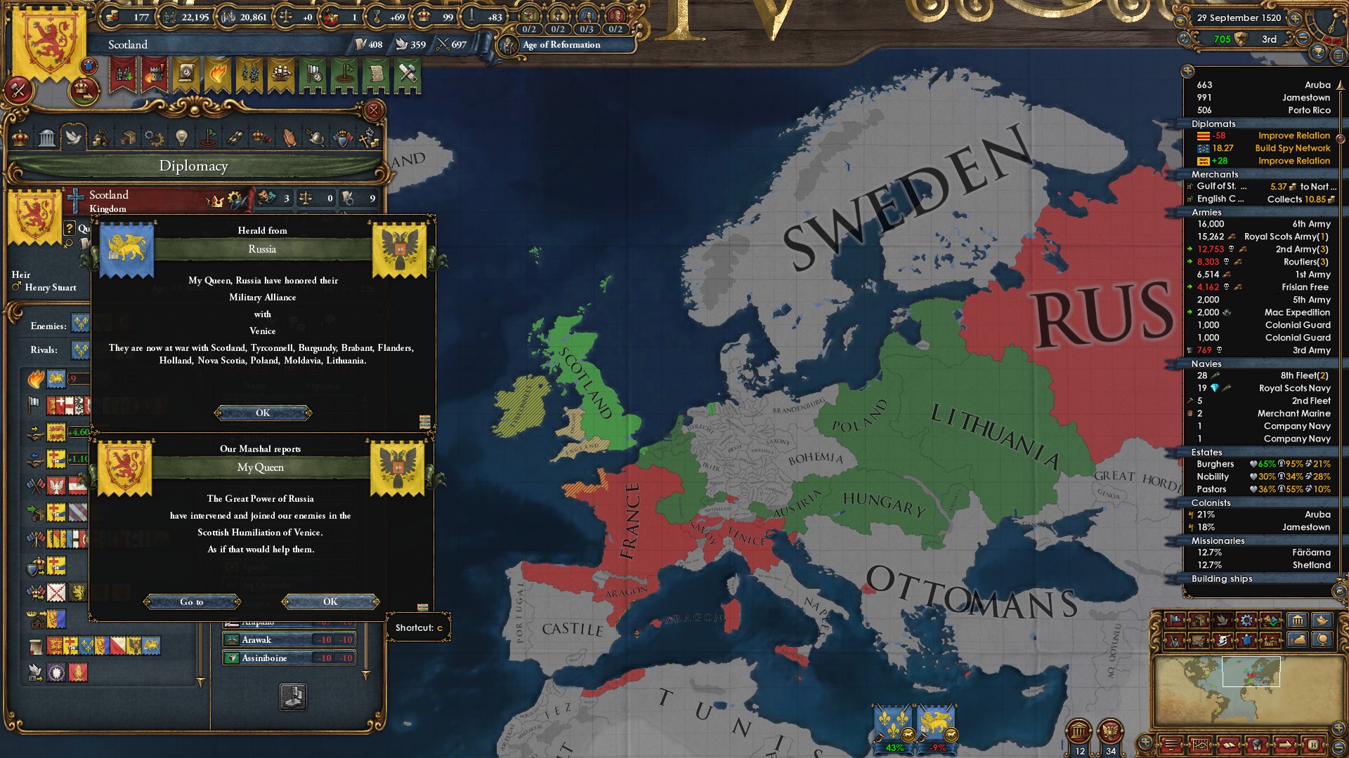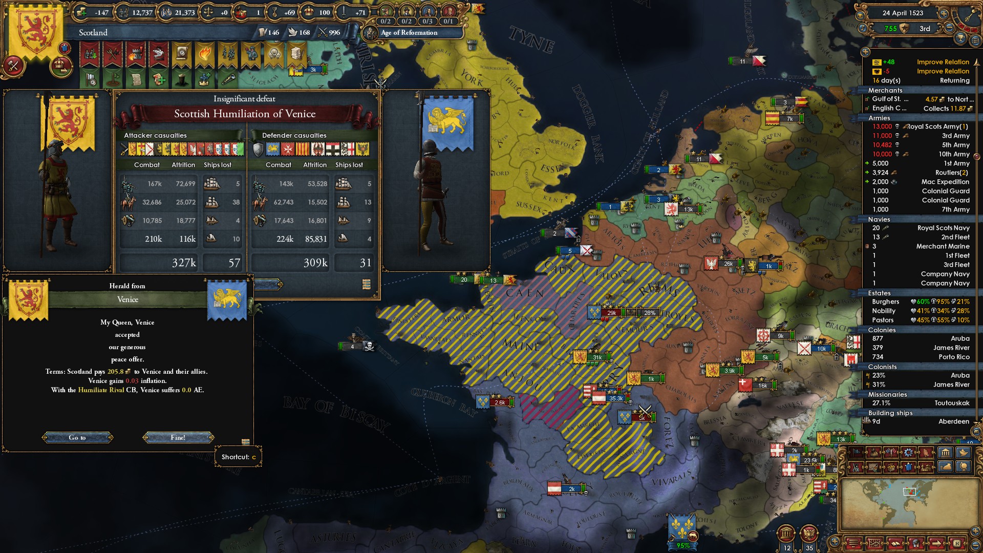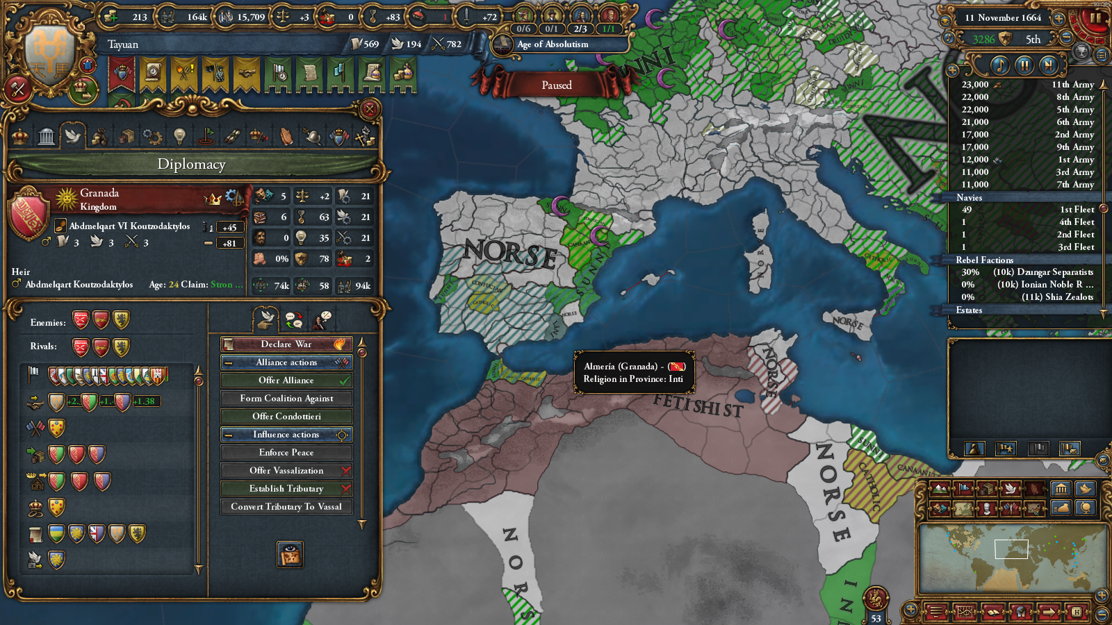 just played vs ottomans as russia, nothing unusual, except albania, while being catholic, was somehow allied with the ottomans. That would have not been a problem. However, some bug caused the albanians, consisting of one 20k pop province, to gain 300k soldiers (i have 164k, ottomans have 158k). I wonder if it got something to do with the skandenberg events. Well, time to reload.