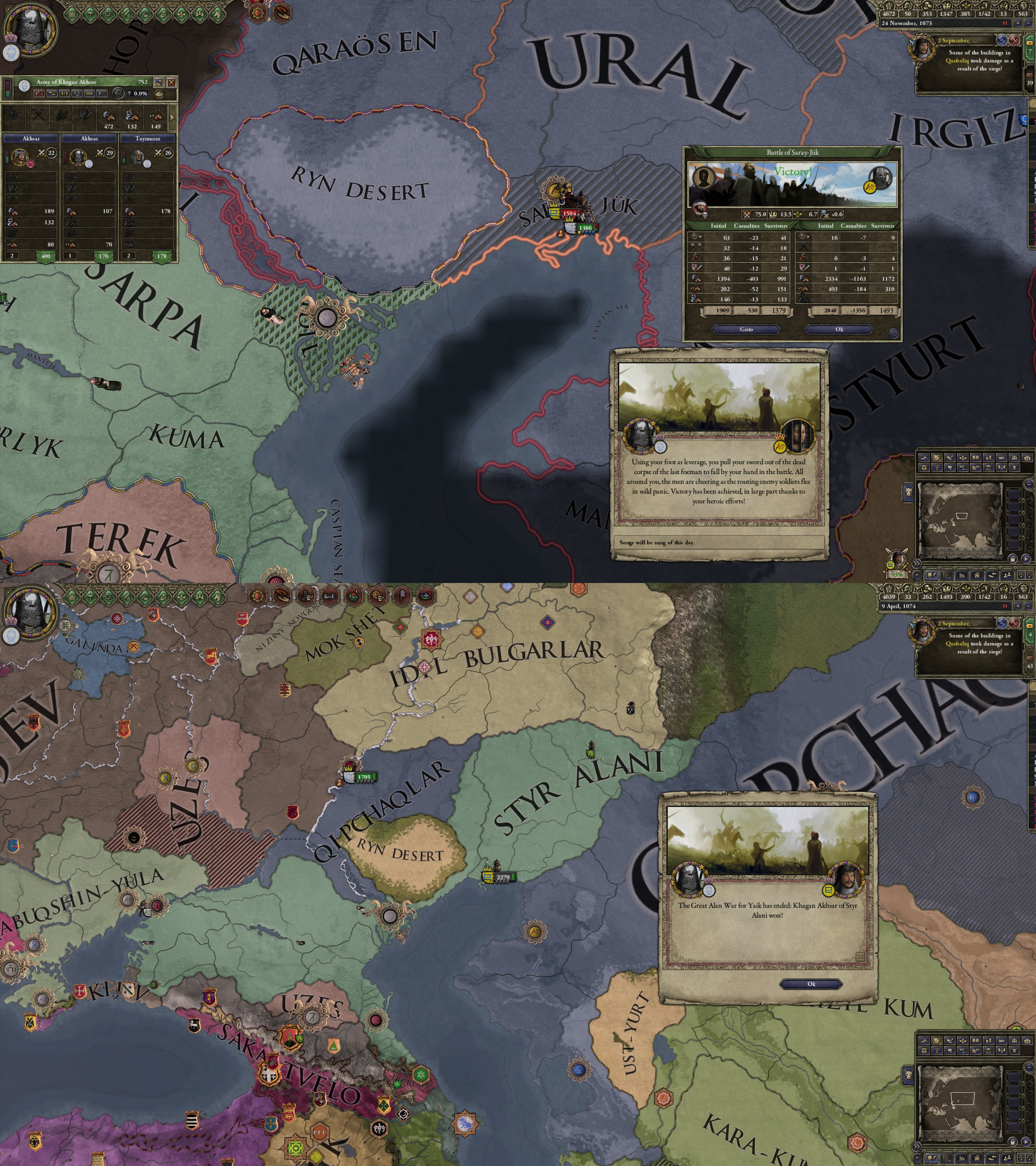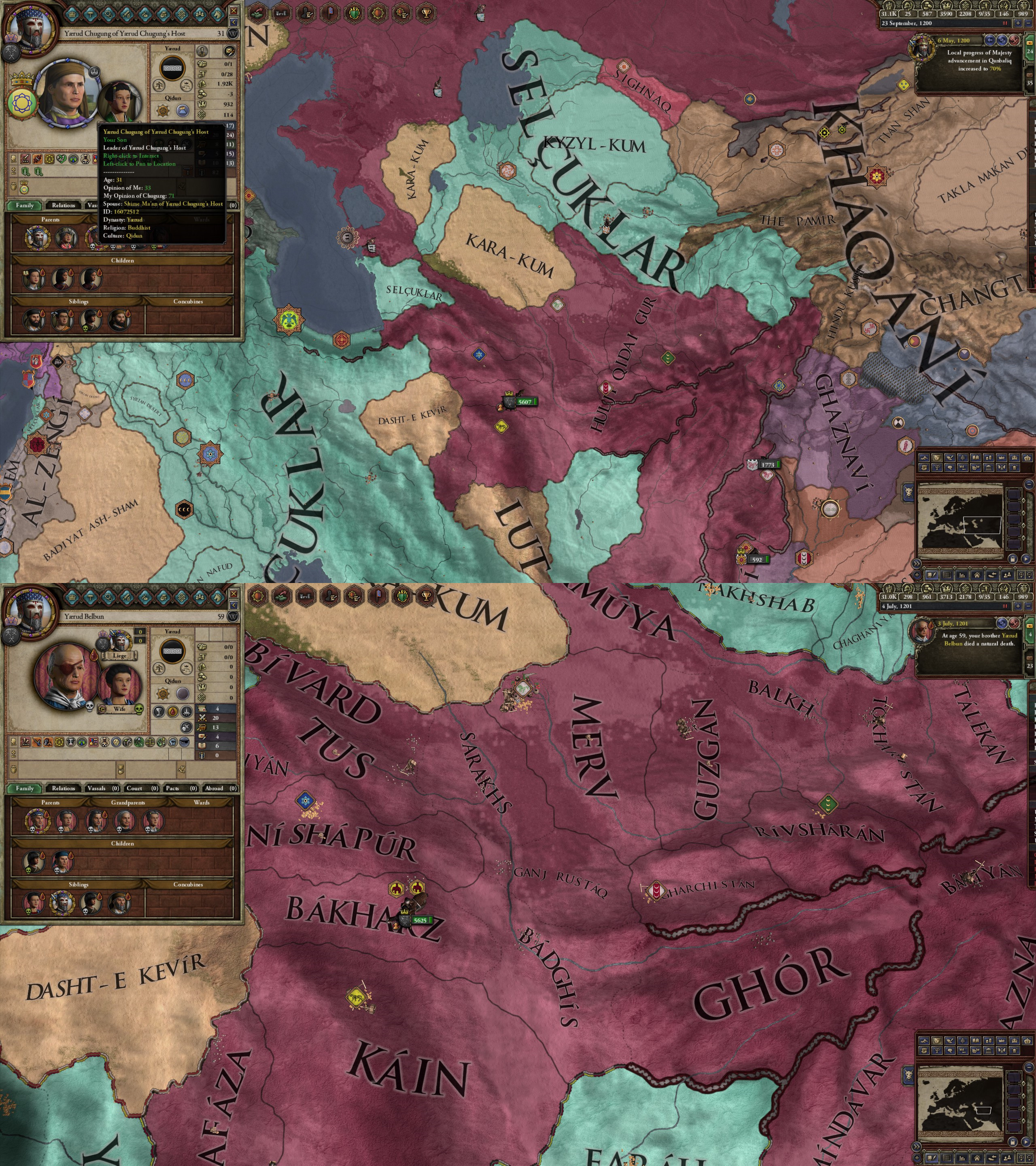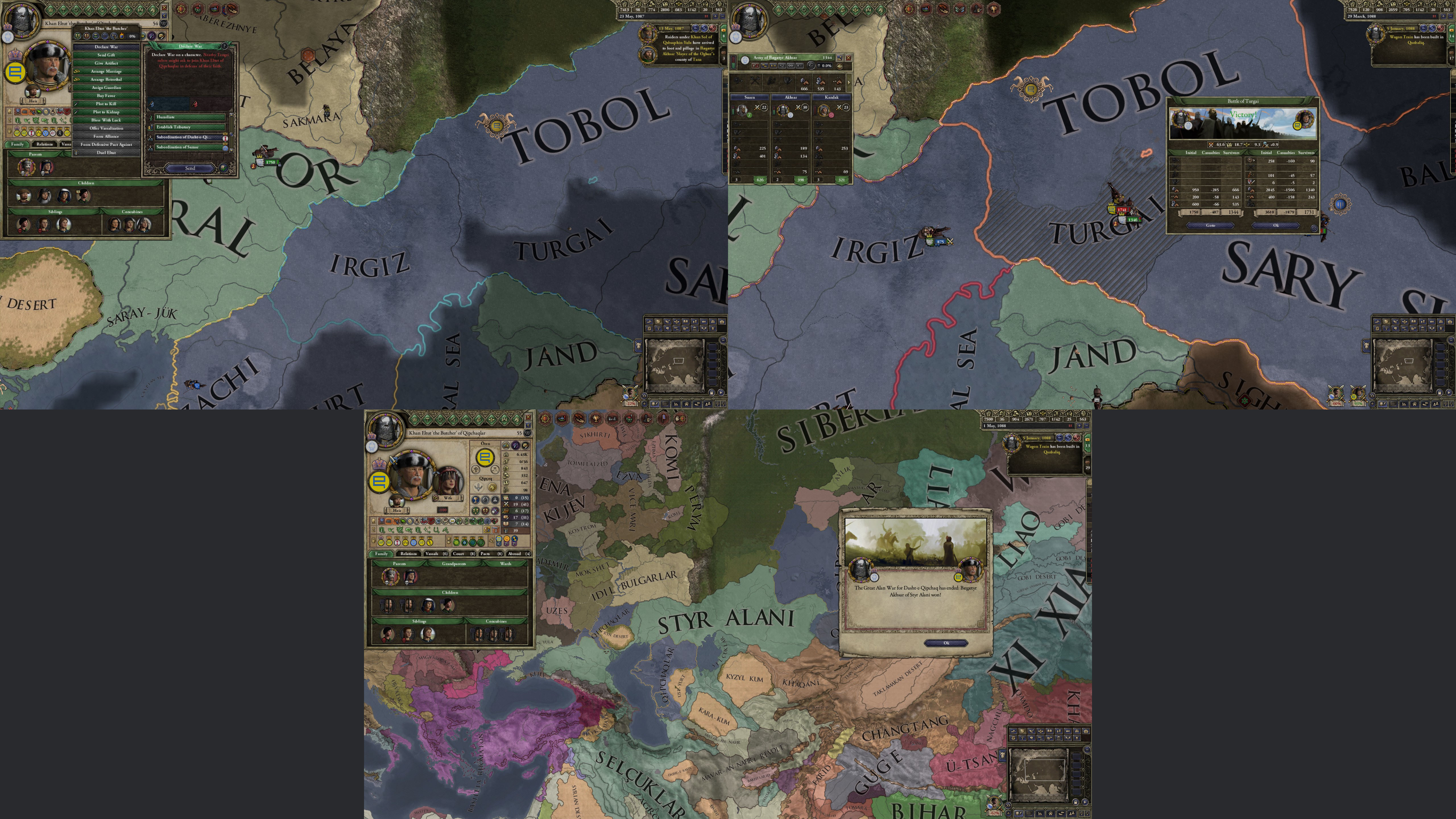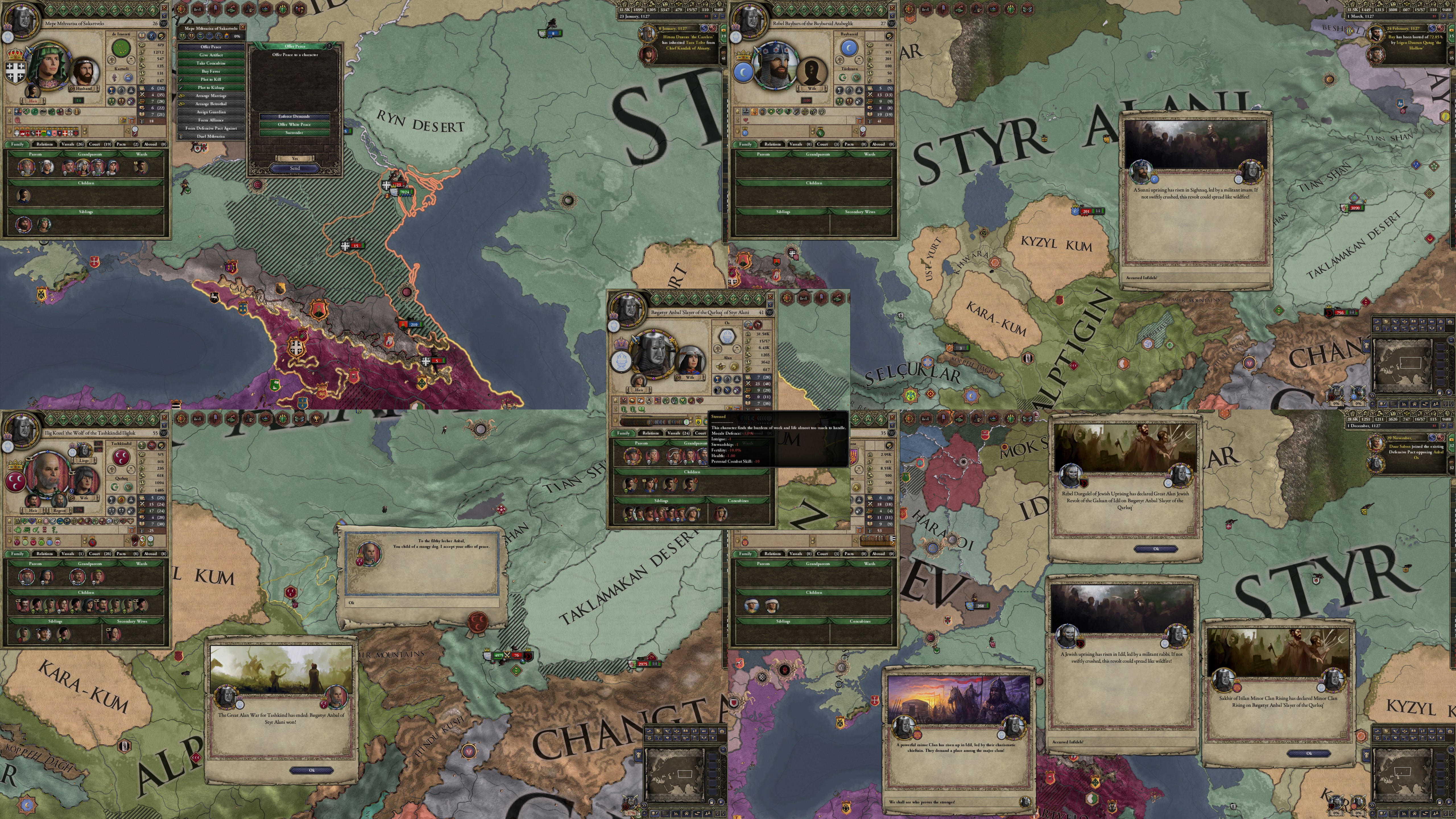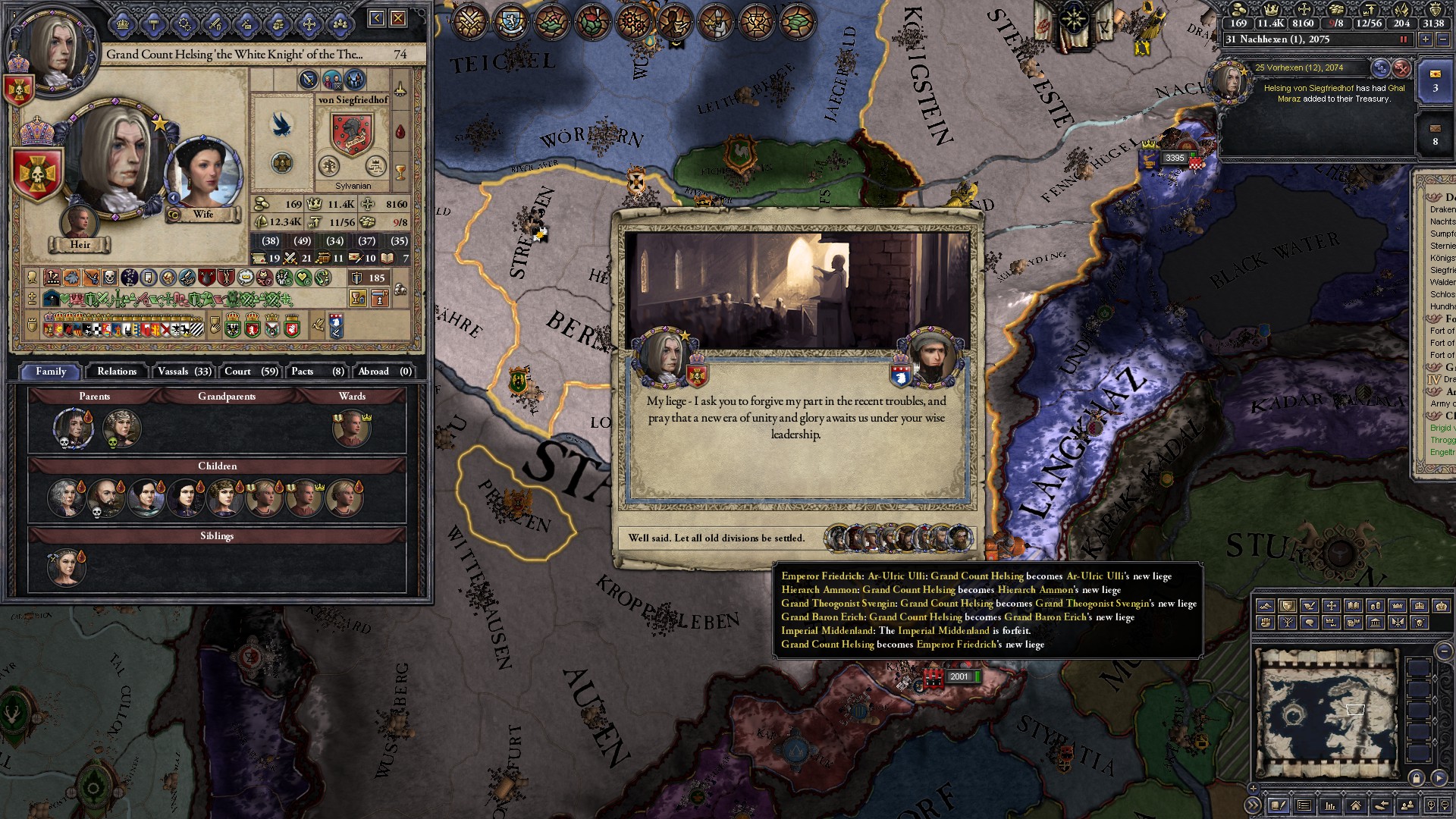However, not long after, news reaches the capital that, not even a week later, his mistress Altun had given birth to a son by him. The boy, Ælbeg, is acknowledged as his own, much to the outrage of the barely-postpartum Queen.