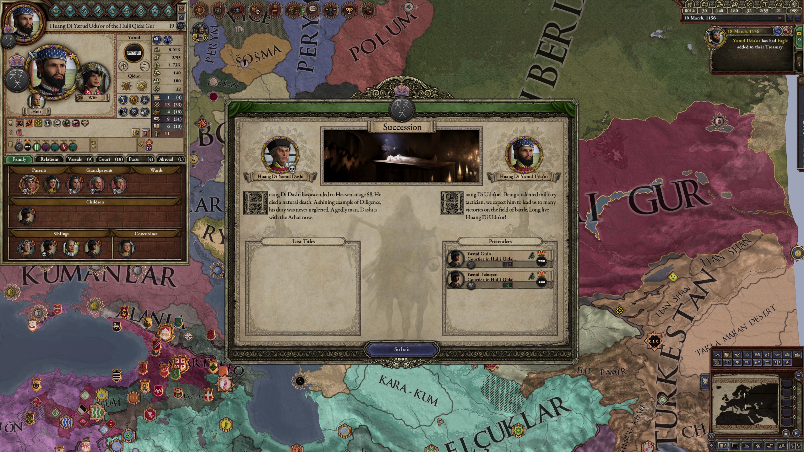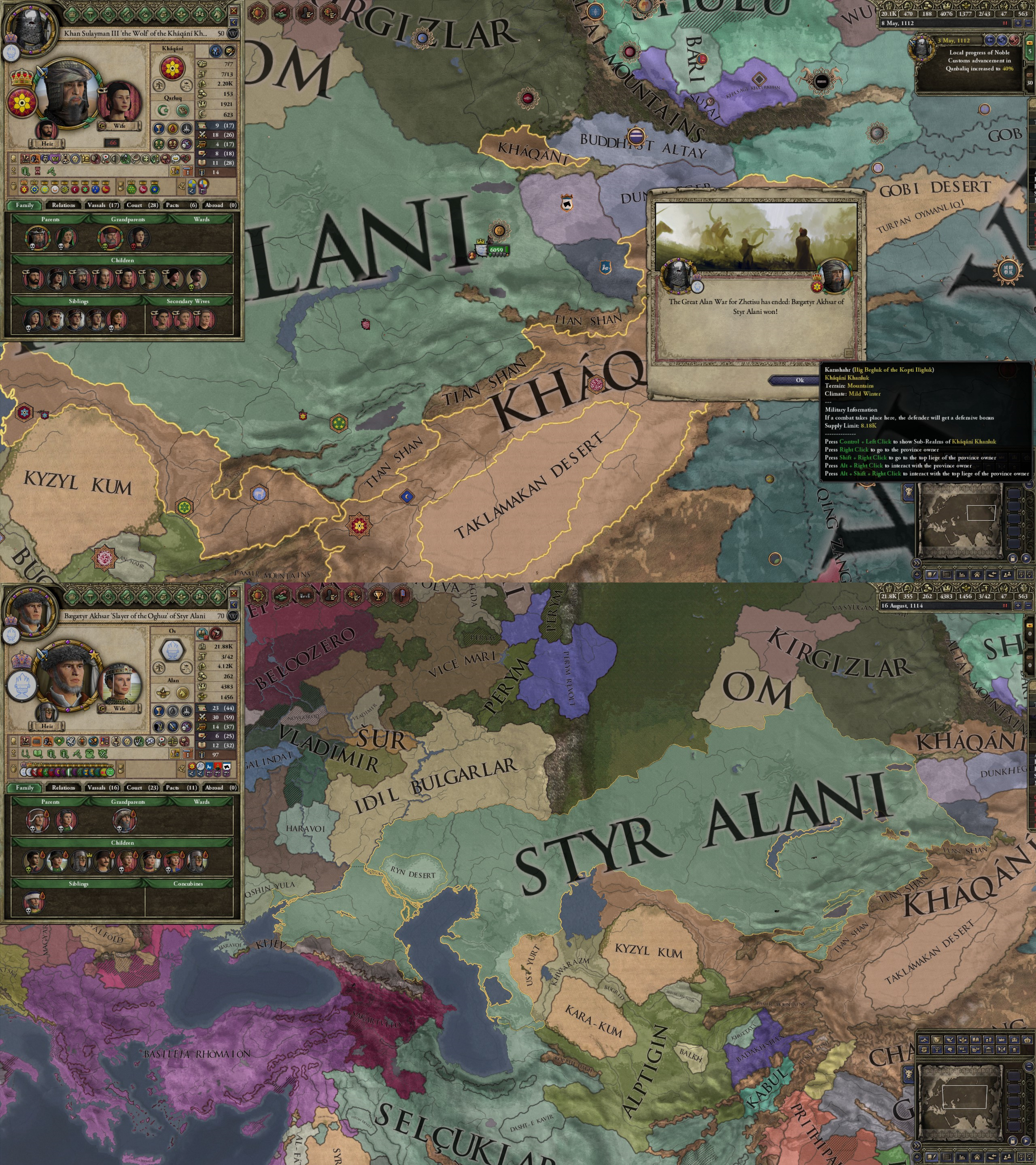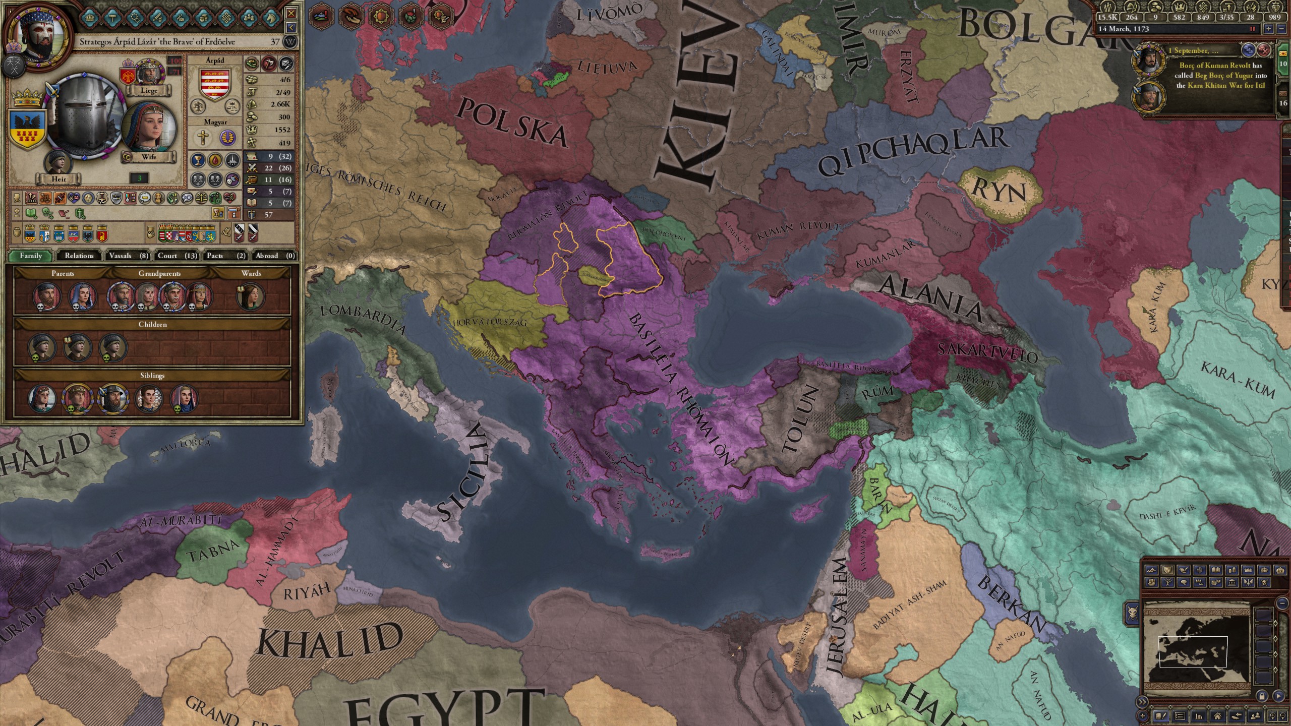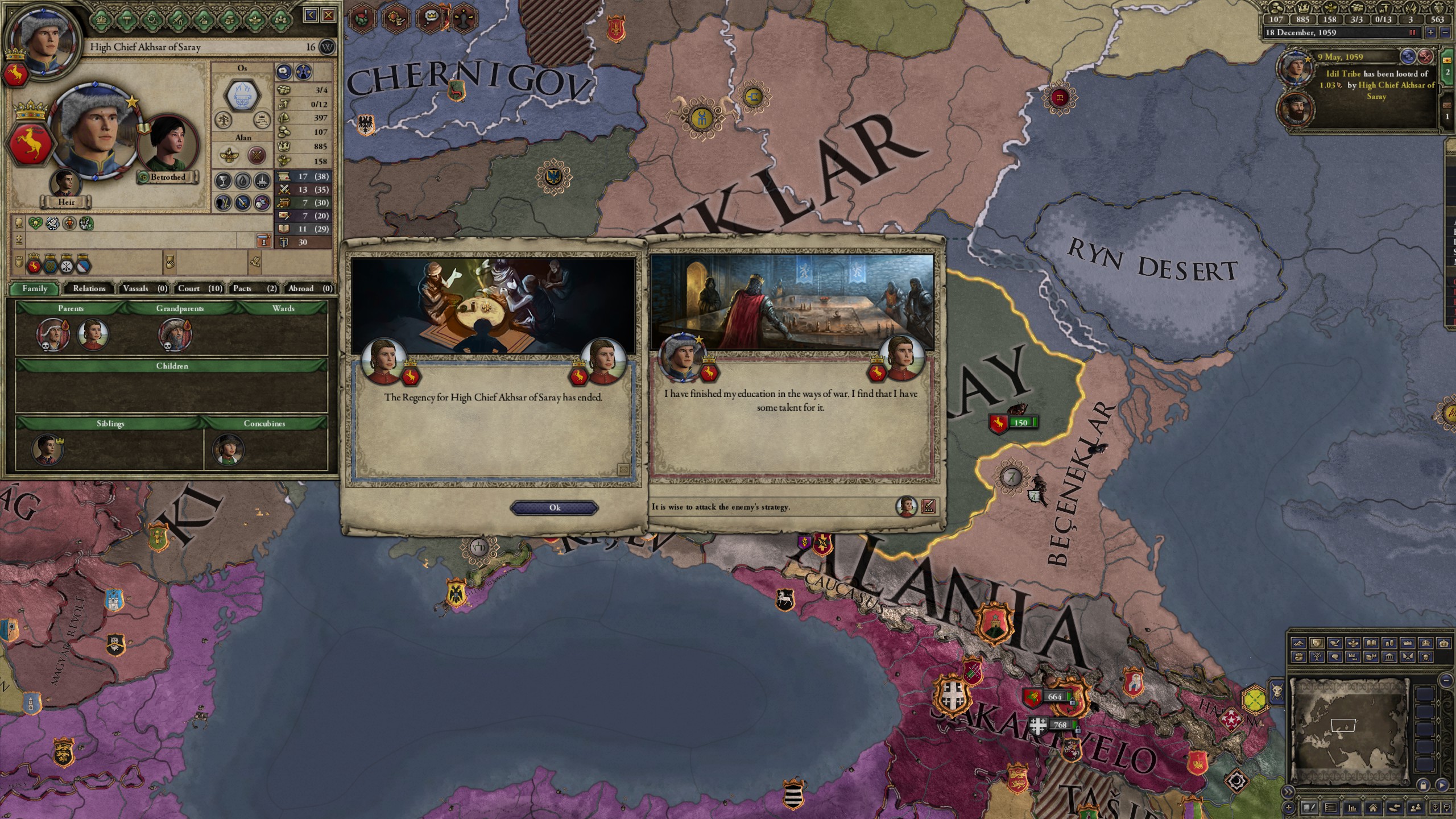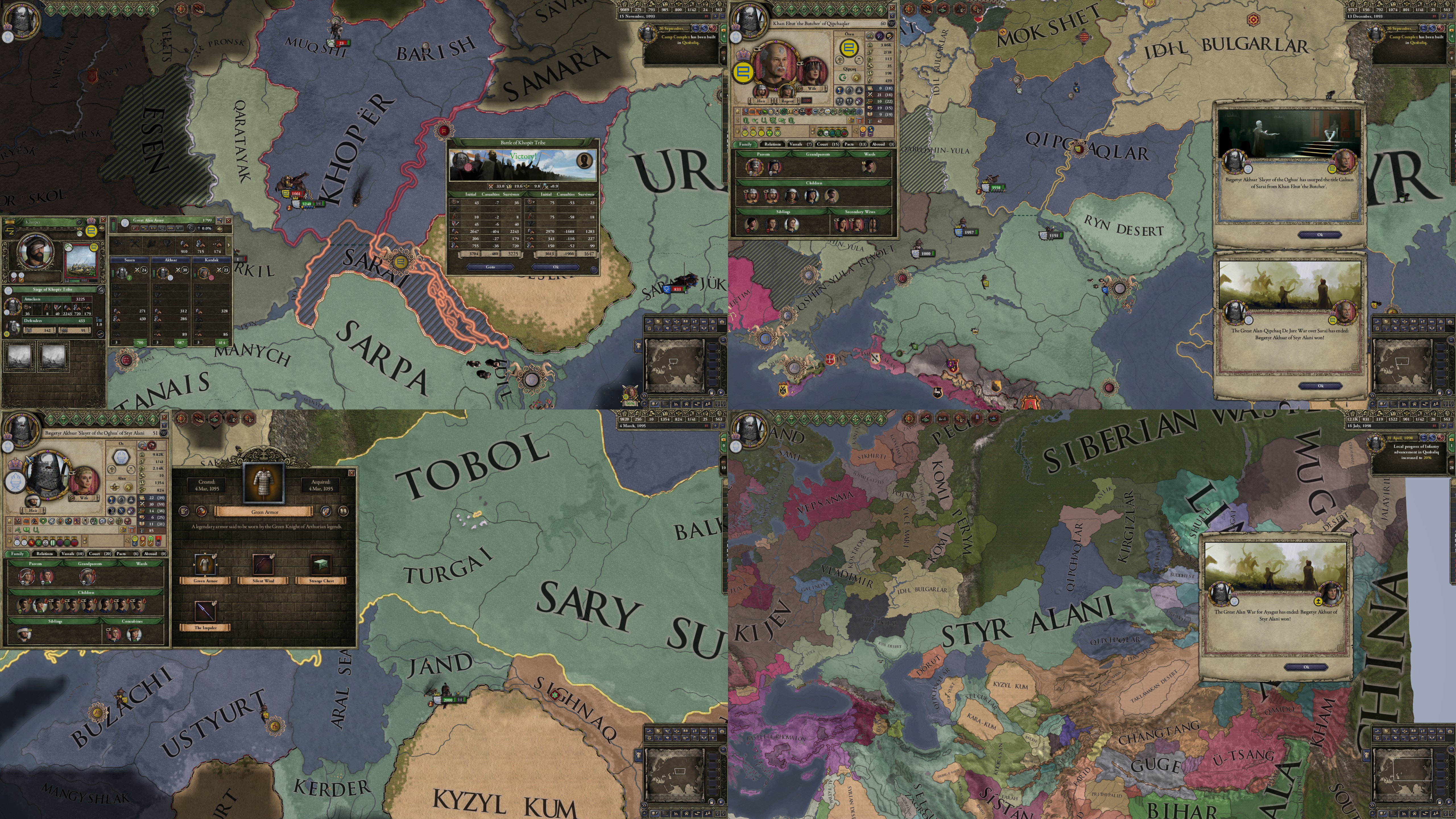 However, not long after, news reaches the capital that, not even a week later, his mistress Altun had given birth to a son by him. The boy, Ælbeg, is acknowledged as his own, much to the outrage of the barely-postpartum Queen.