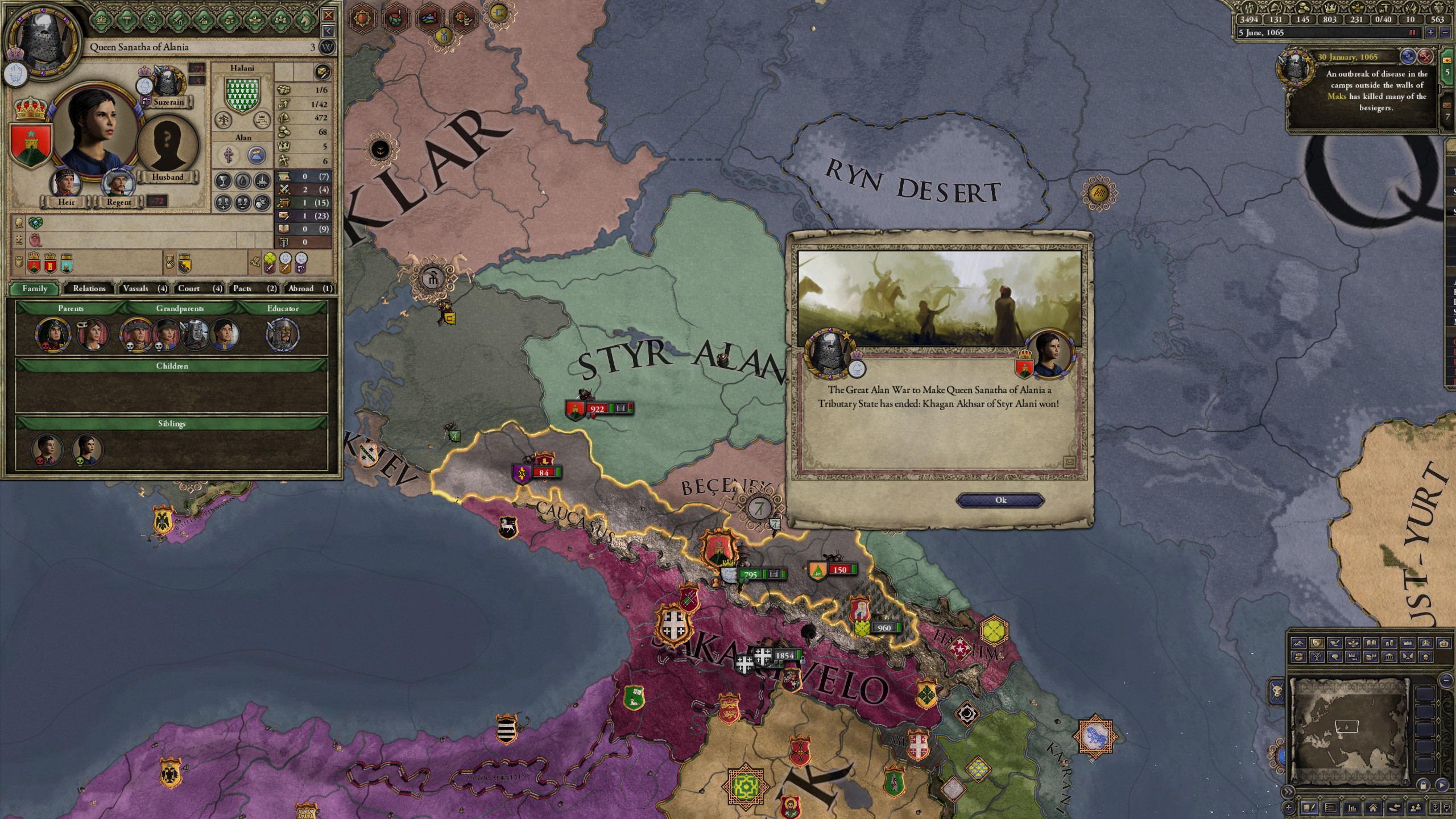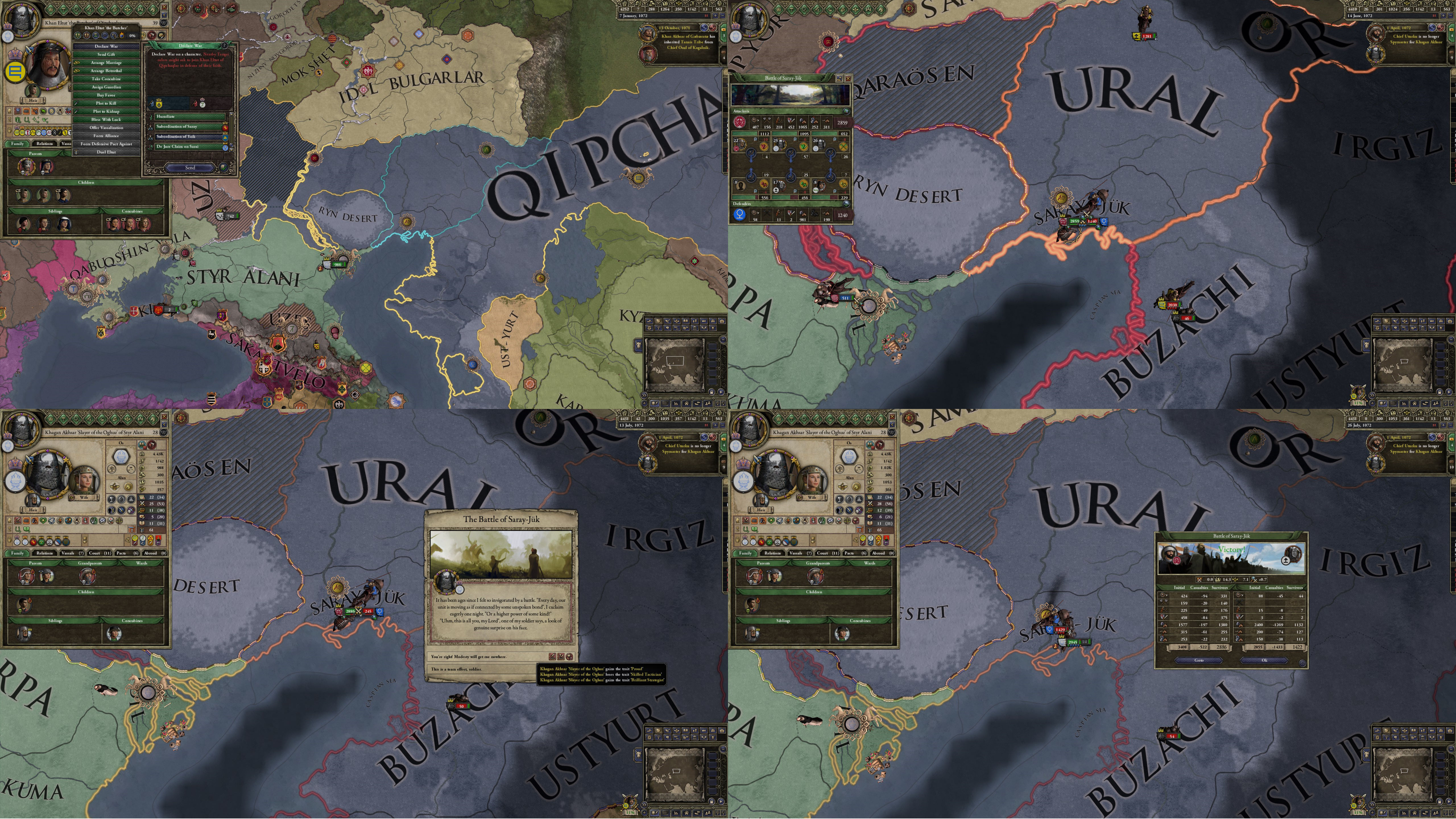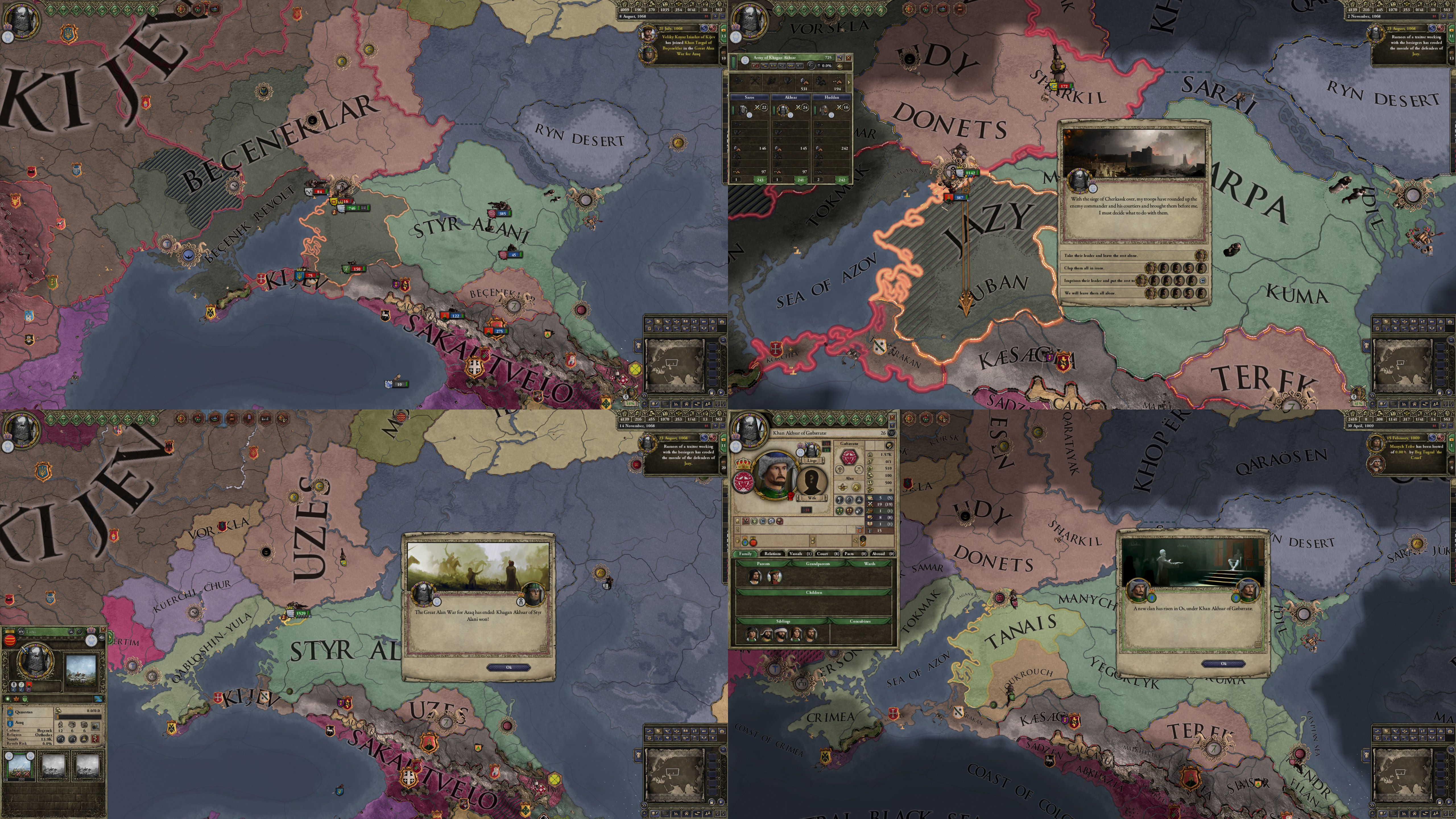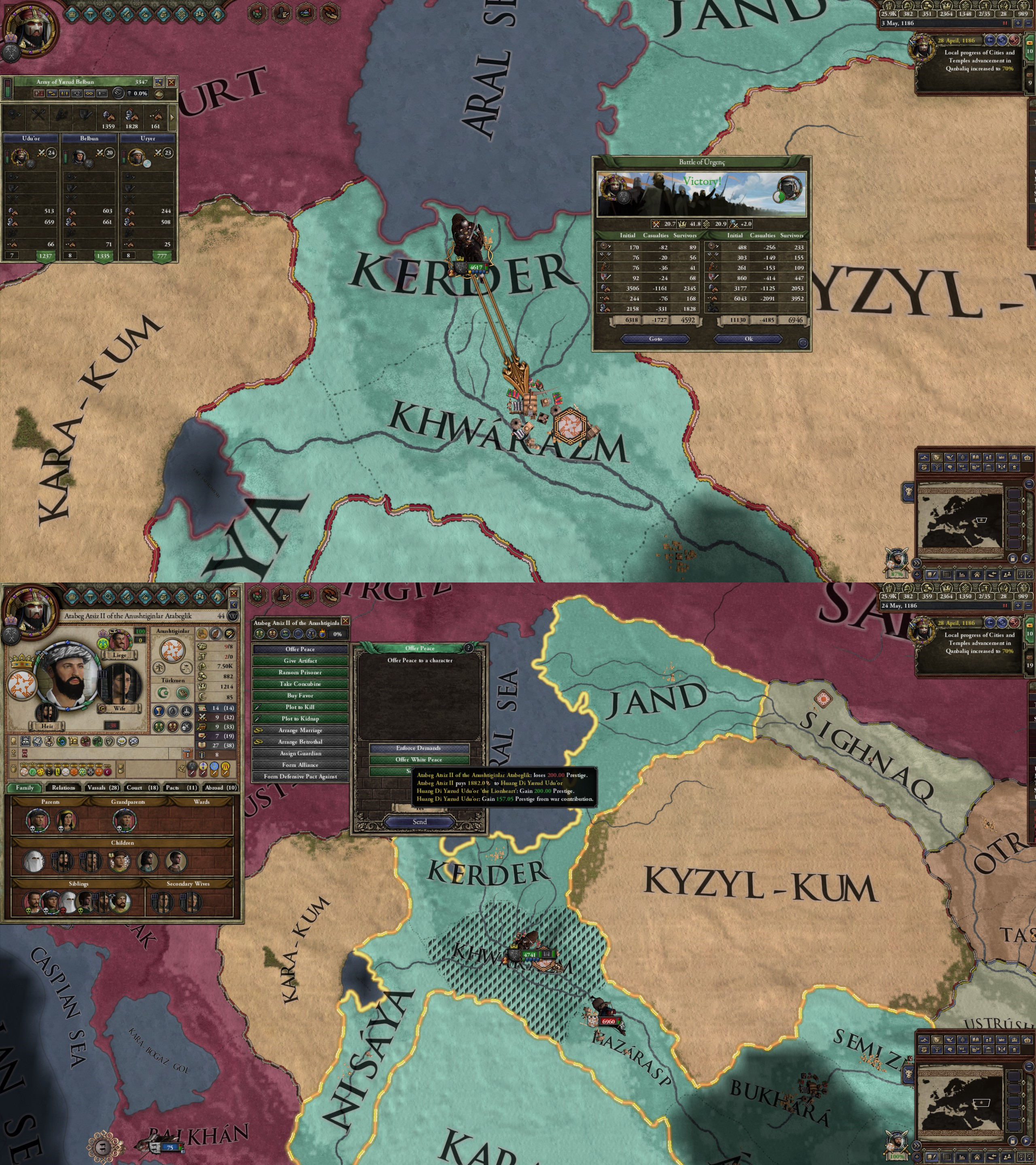 However, not long after, news reaches the capital that, not even a week later, his mistress Altun had given birth to a son by him. The boy, Ælbeg, is acknowledged as his own, much to the outrage of the barely-postpartum Queen.