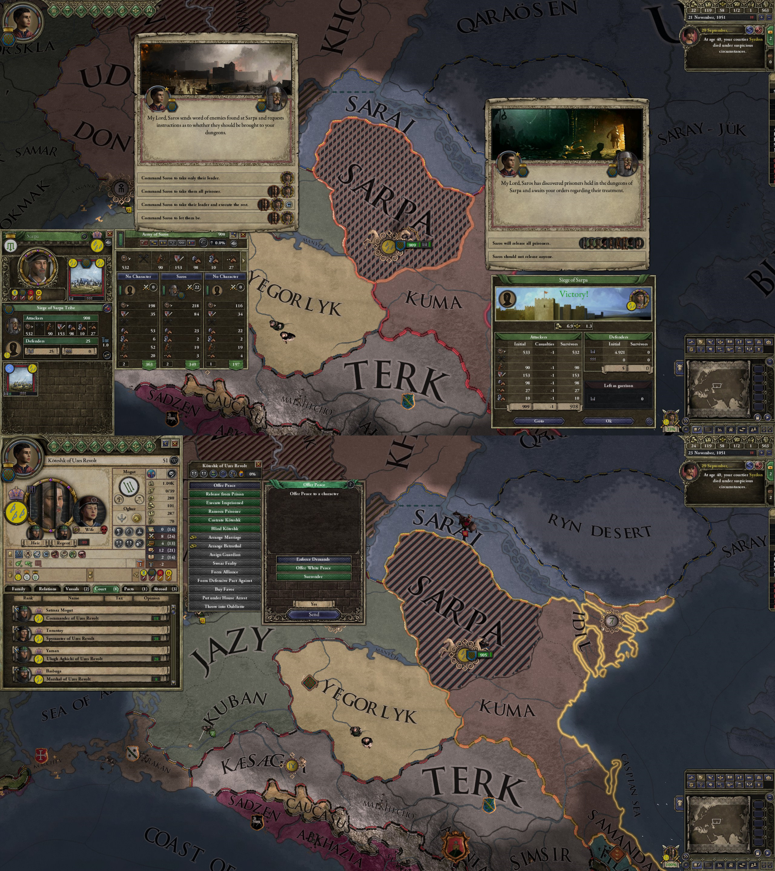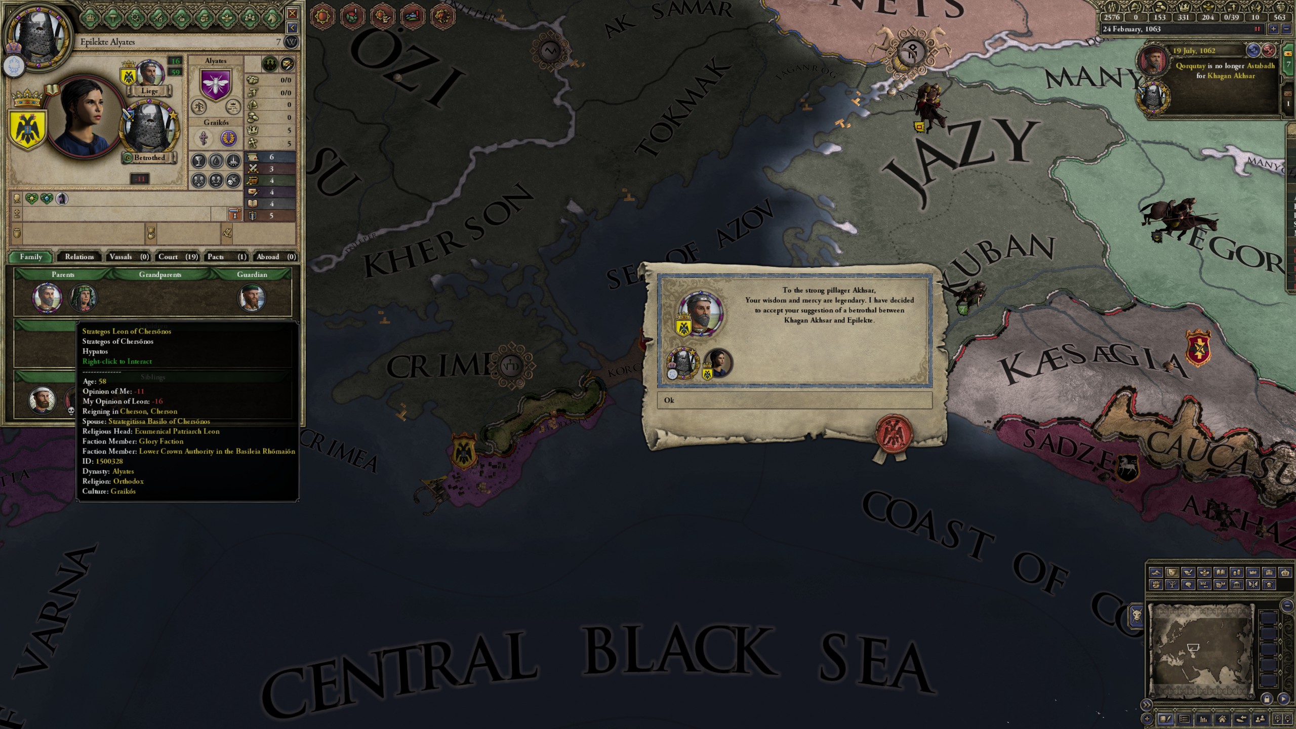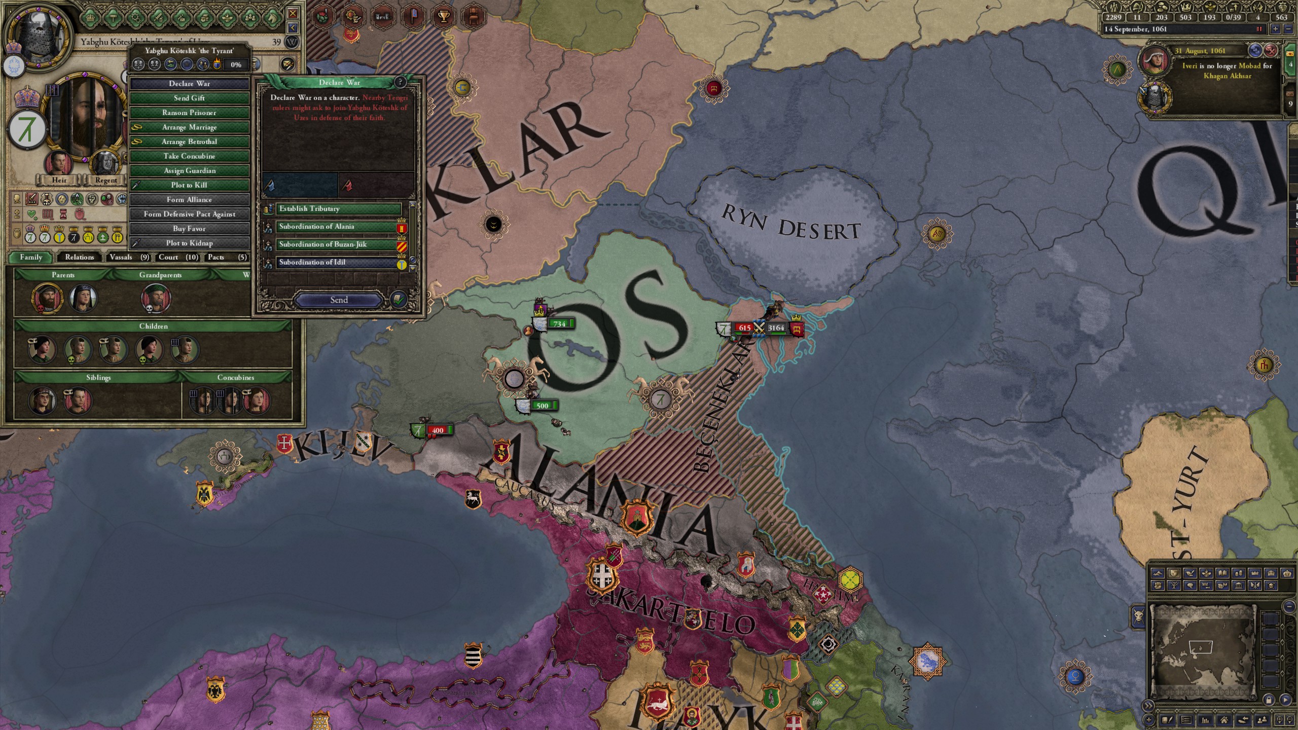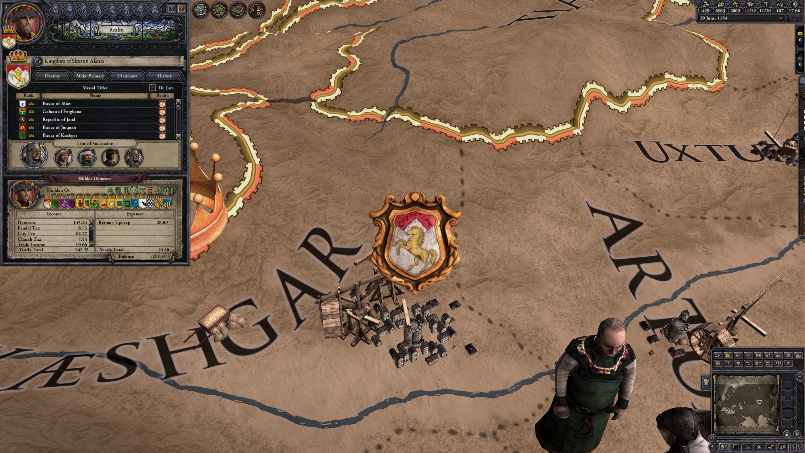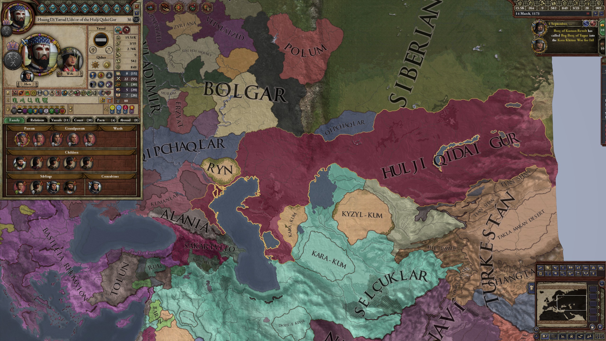 However, not long after, news reaches the capital that, not even a week later, his mistress Altun had given birth to a son by him. The boy, Ælbeg, is acknowledged as his own, much to the outrage of the barely-postpartum Queen.