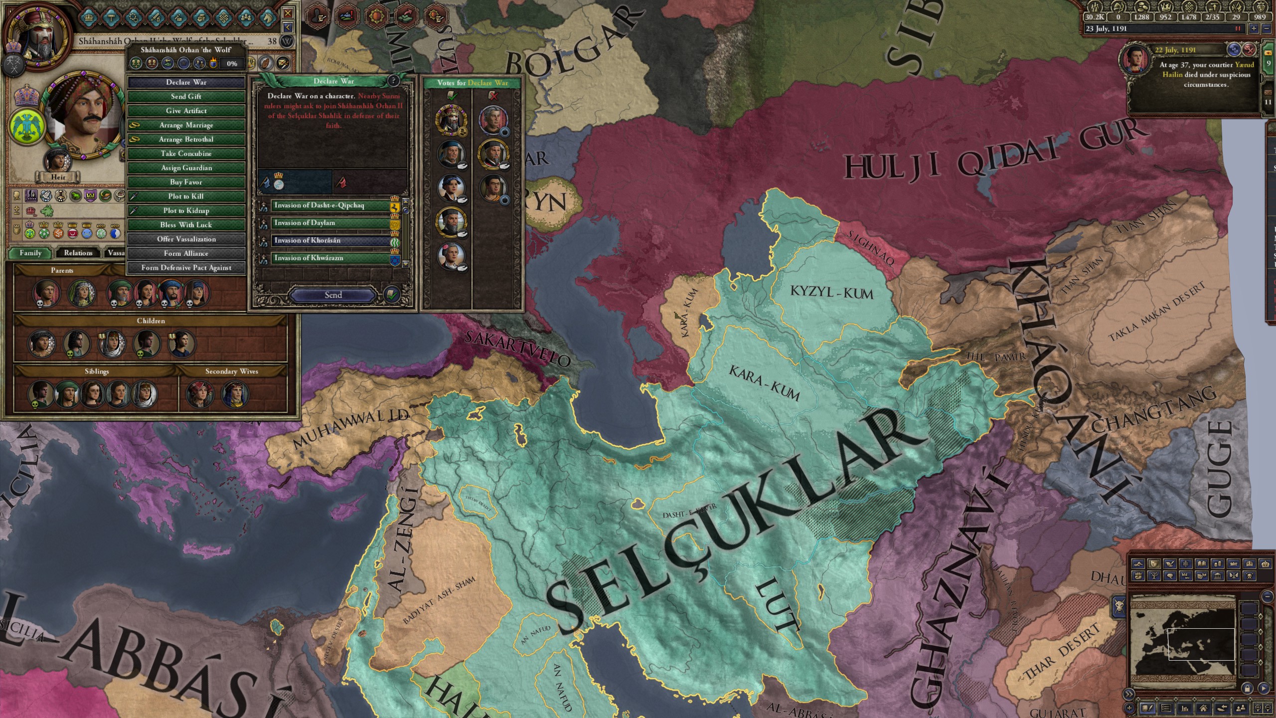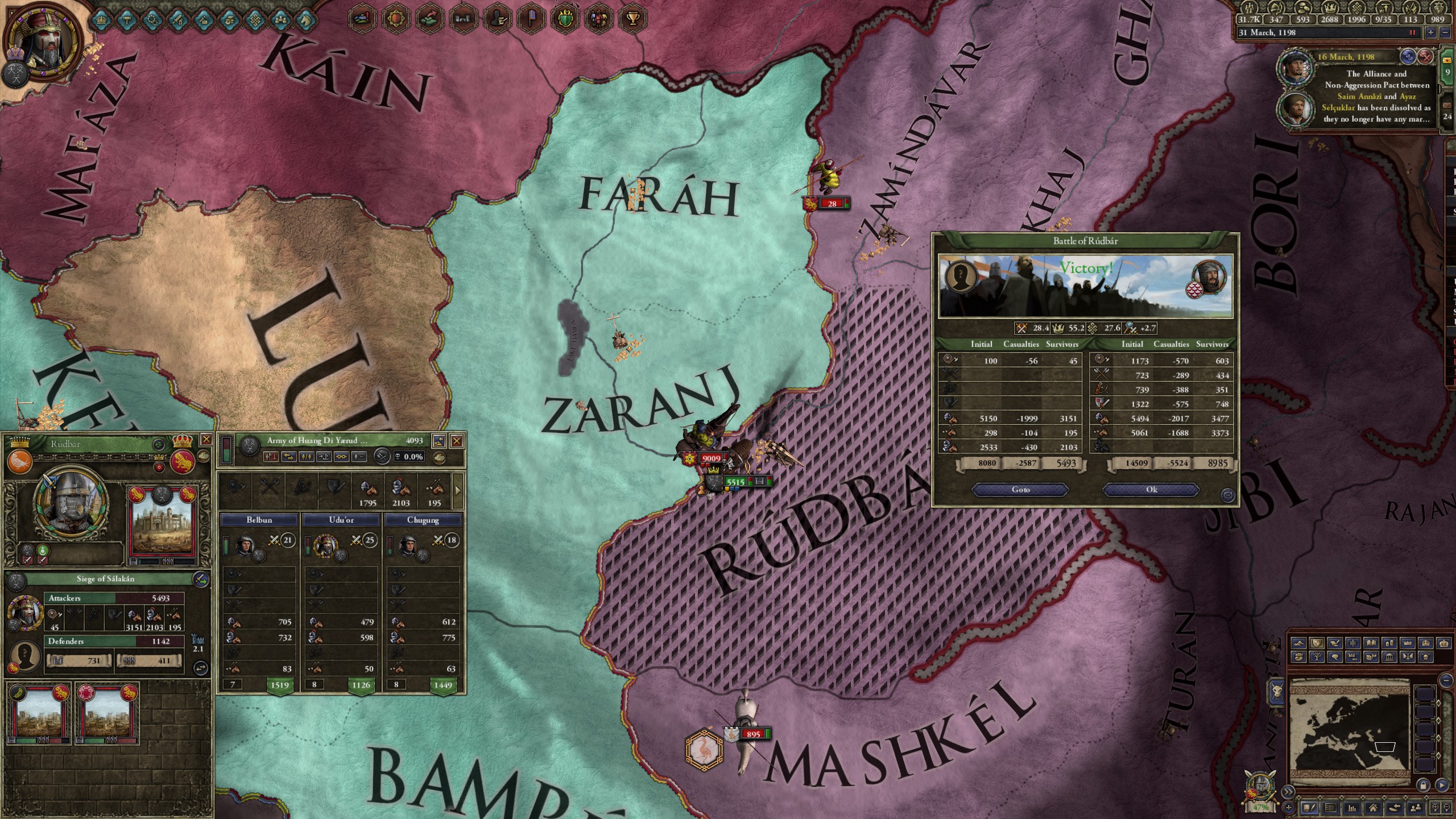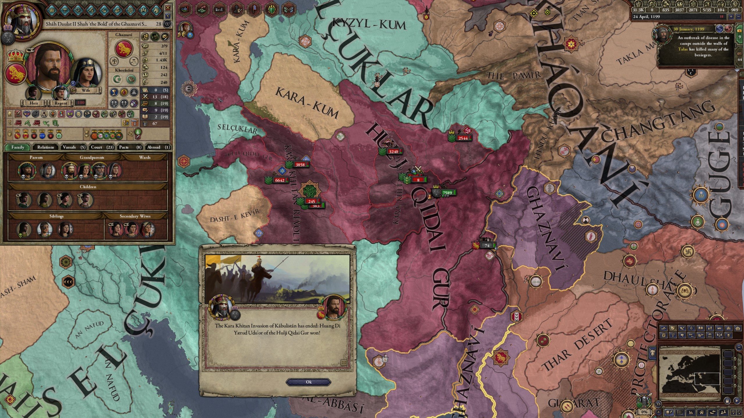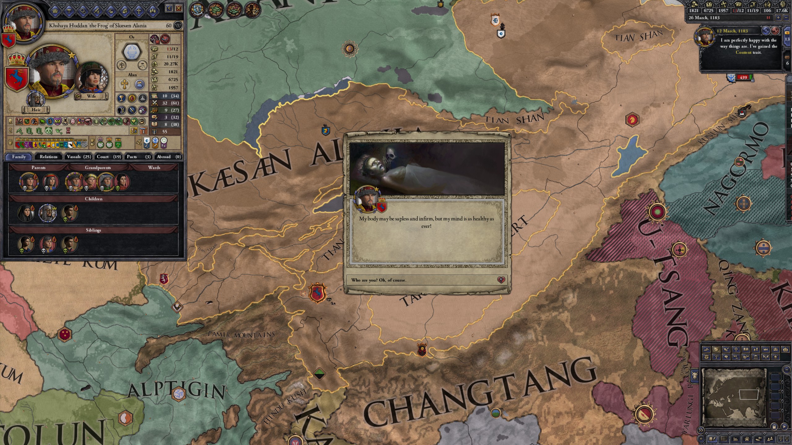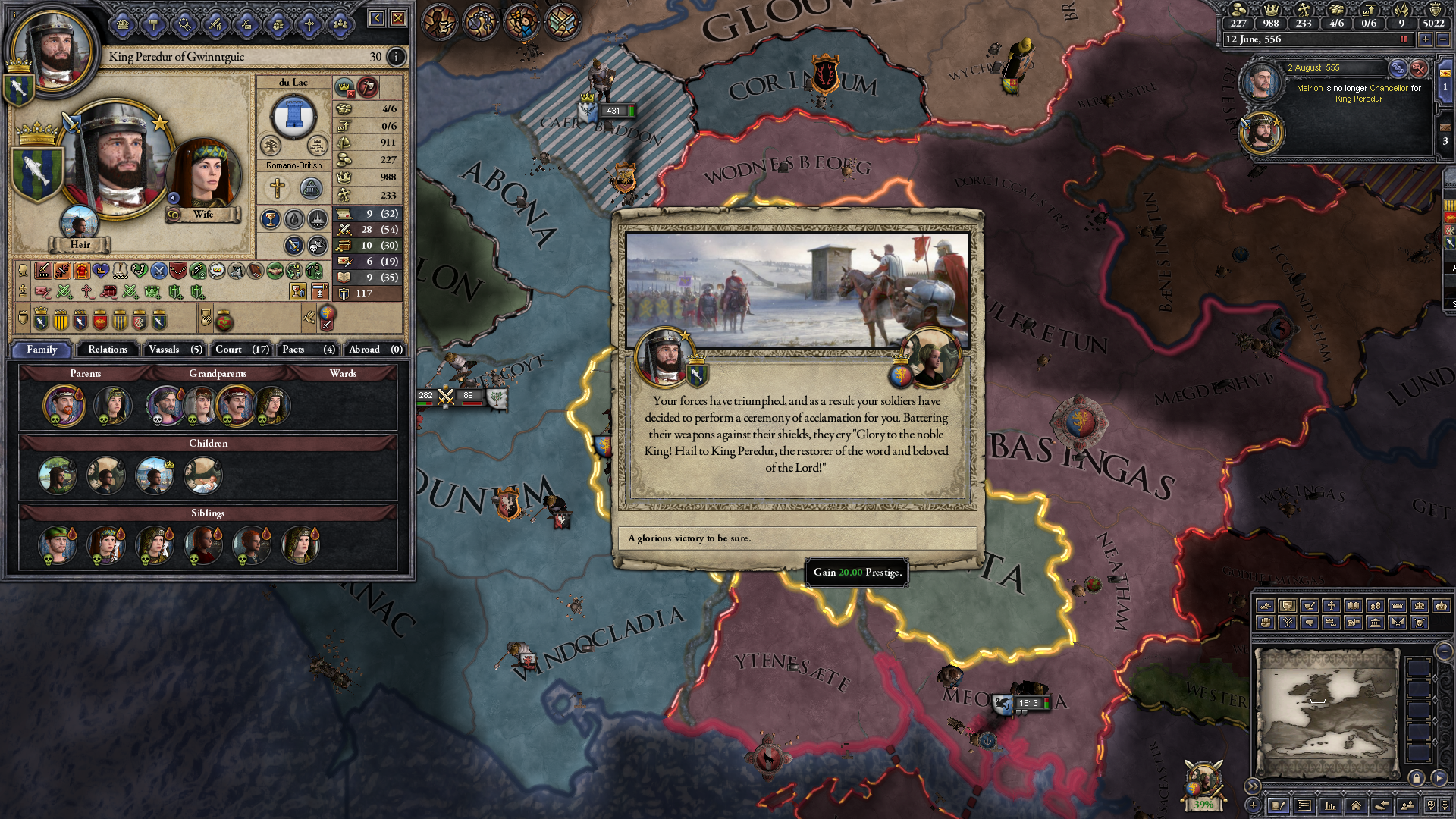 However, not long after, news reaches the capital that, not even a week later, his mistress Altun had given birth to a son by him. The boy, Ælbeg, is acknowledged as his own, much to the outrage of the barely-postpartum Queen.