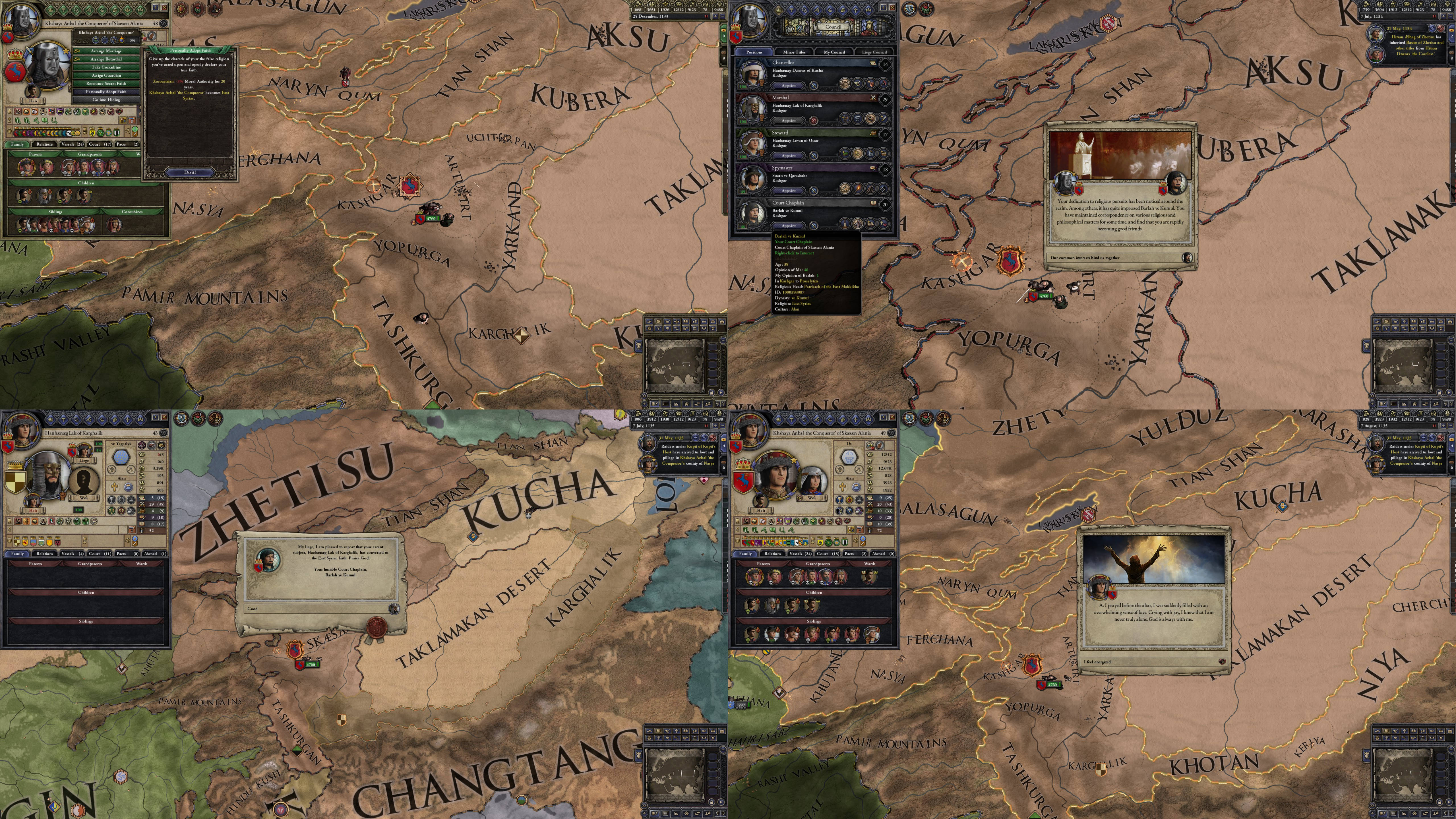 In the meantime, the coronation proceeded. About a decade prior, Huddan had offered refuge to the Patriarch of the East in a newly constructed monastery not far from Khotan. Thus, his son was to be coronated by the Patriarch himself.