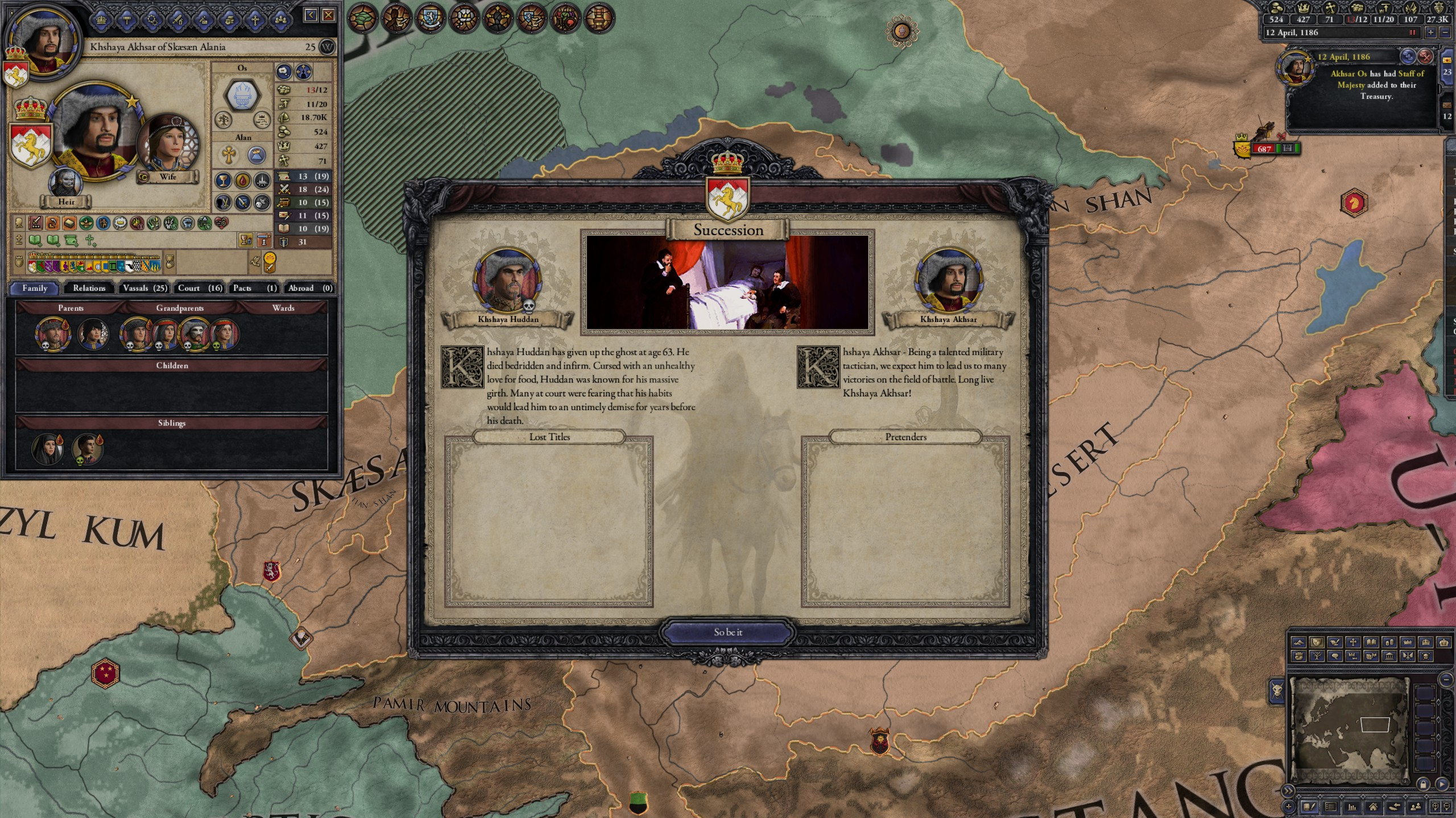 His only surviving son Akhsar came to the throne and immediately began making preparations for his coronation.