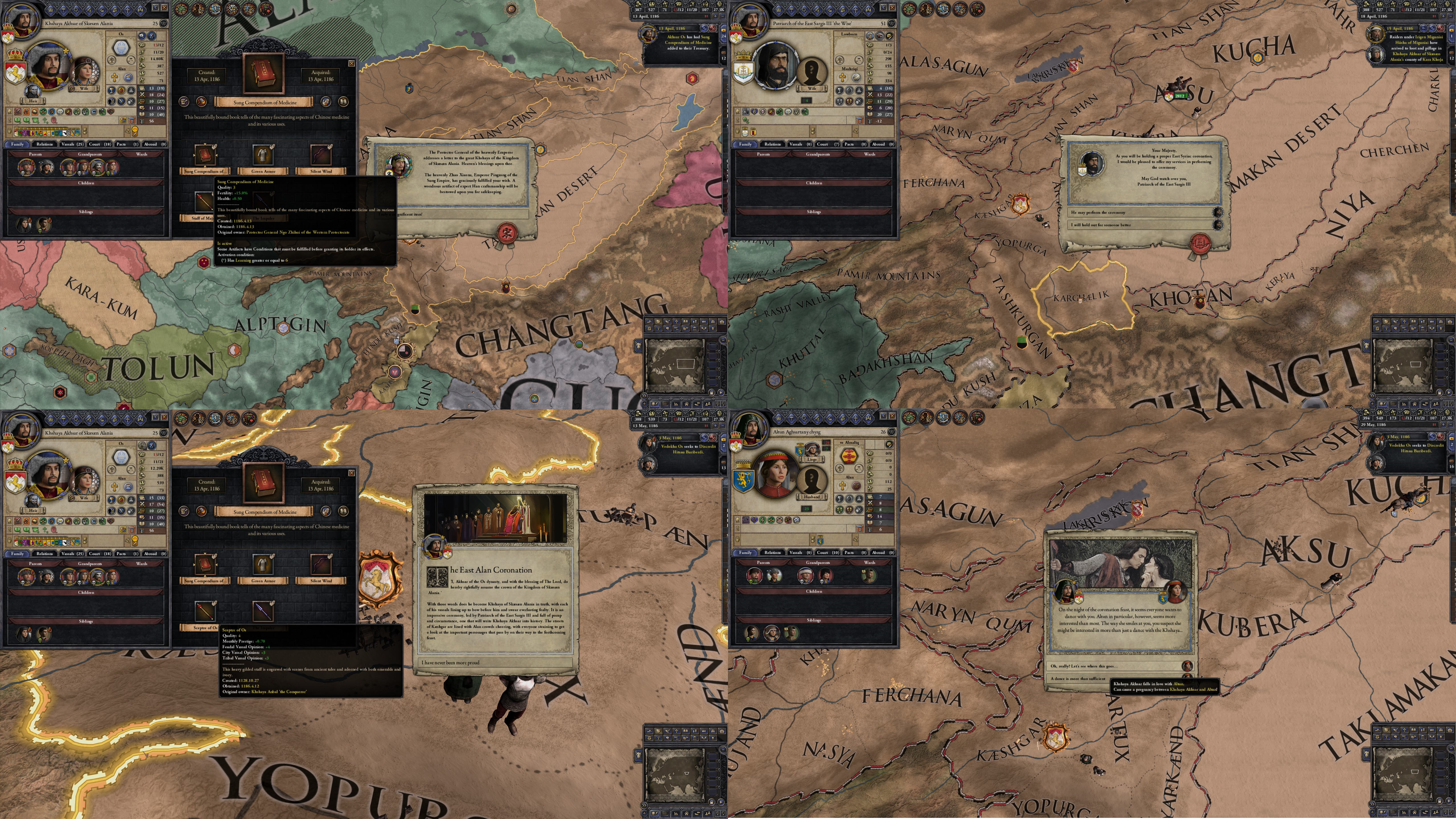 An entourage of Chinese emissaries arrived at the court not long after and bowed low before the young Khshaya, presenting him with a hefty leather-bound tome, beautifully gilded with runes of the east. A gift from the mighty Emperor of the Song, it was said, in hopes of peace. Akhsar agreed to this peace, that his Alans would no longer raid in the east.