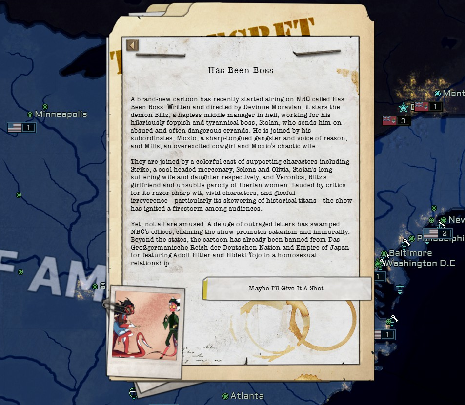 >>2374661That's why Germany owning Africa was so important. Because while it does make sense that the Nazis wouldn't really fuck around with East Asia or the Americas, they need to be involved somewhere for them to actually be a major faction gameplay-wise.Africa was a good place for that. It made a bit of sense, it was a place they'd be able to conquer and would lead into their whole autarky mindset.Plus it's just a naturally horrific image which really makes TNO stand out.Now Germany is essentially going to be a non-factor. They won't have a civil war, won't lose parts of their European sphere, and won't be involved in the stories of literally anywhere else.