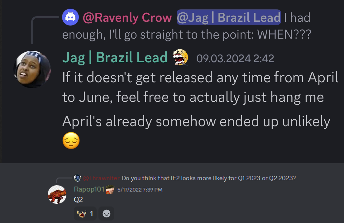 >>2374588Eh, the mechanic they're adding was already finished development wise. Maybe I'm coping but it shouldn't slow it down too much
