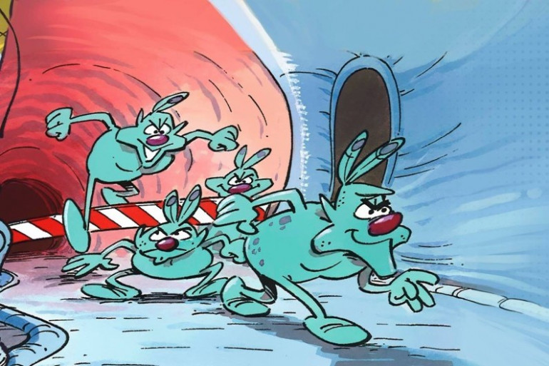 first watch "Il était une fois… la Vie". French animated series, it has many battle scenes involving bacteria, viruses, white blood cells, and antibiotics. A good inspiration for your project.