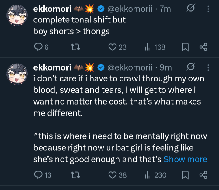 >>107275719sorry anon, she will get pregnant and graduate as well. Hololive depends on Suisei, Miko and Pekora. The rest are expendable. EN side is doomed as well