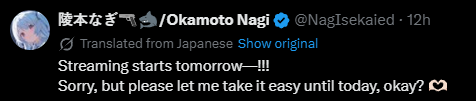 also no stream tomorrow