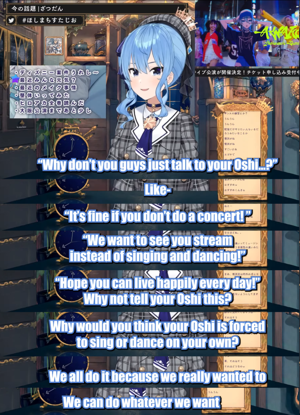 FACT: Talents don't need to accept projects they don't want.FACT: Talents overworking themselves is completely on them with very rare exceptions.FACT: If enough people tell their oshi "I don't want to see your projects, I just want streams!", then they will start streaming more and overwork themselves less.
