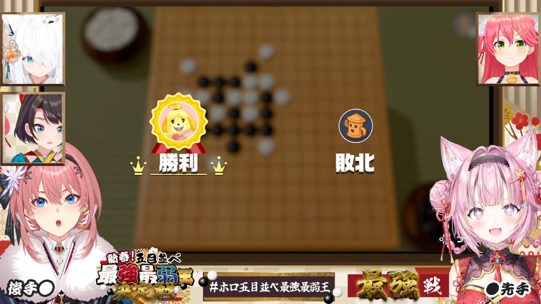 Koyori defeated Lui at gomoku on that thing hosted by Miko, Subaru and Fubuki.