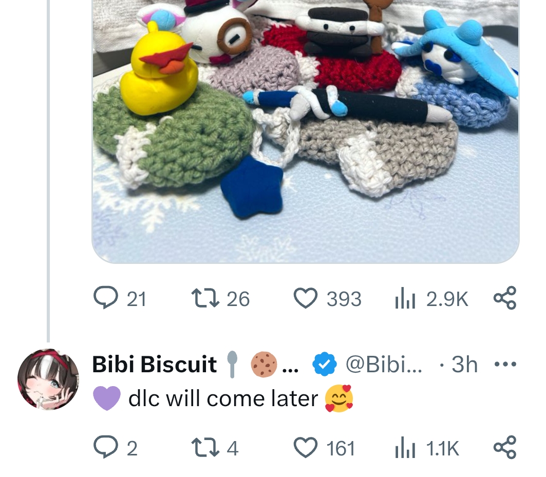 >>107941338Bibi is very creative, I did not expect crocheting or clay sculpting.Saga girls keep surprising me.