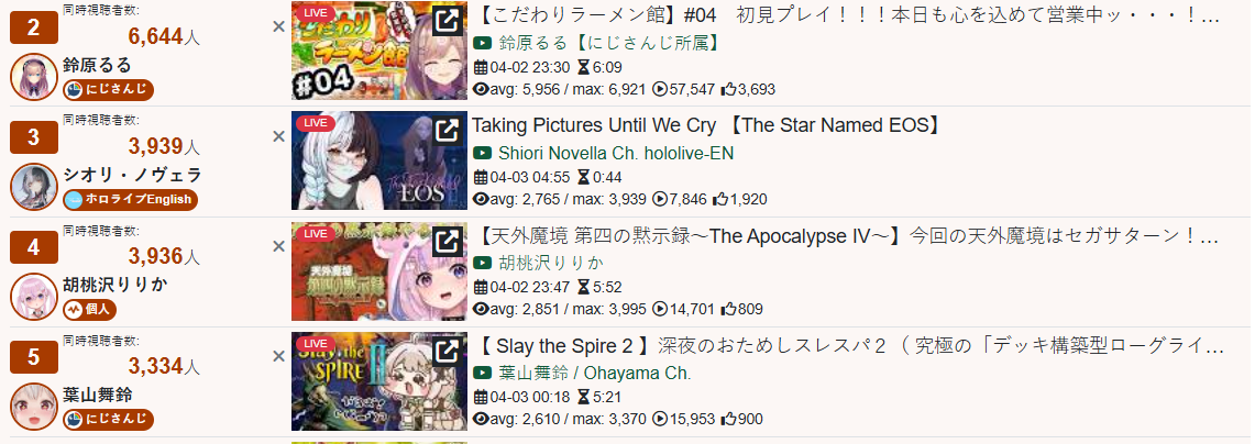 Thread for discussion of Japanese Vtubers and all related topics, including news and numbers.Includes but not limited to: Aogiri Highschool, Dot Live, Re:AcT, NoriPro, Neo-porte, VPI Cafe, Hololive, 2434, VSPO, Kizuna Ai Inc, ASTlive, 774 inc, VOMS, Strawberry Prince, VEE, Varium, Sinsogumi, Million Production, Aikatsu Academy, Hasunosora Highschool, Idolm@ster vα-liv, any other corpos, vsingers, ASMR and all JP indies regardless of scale.Previous: >>110705915