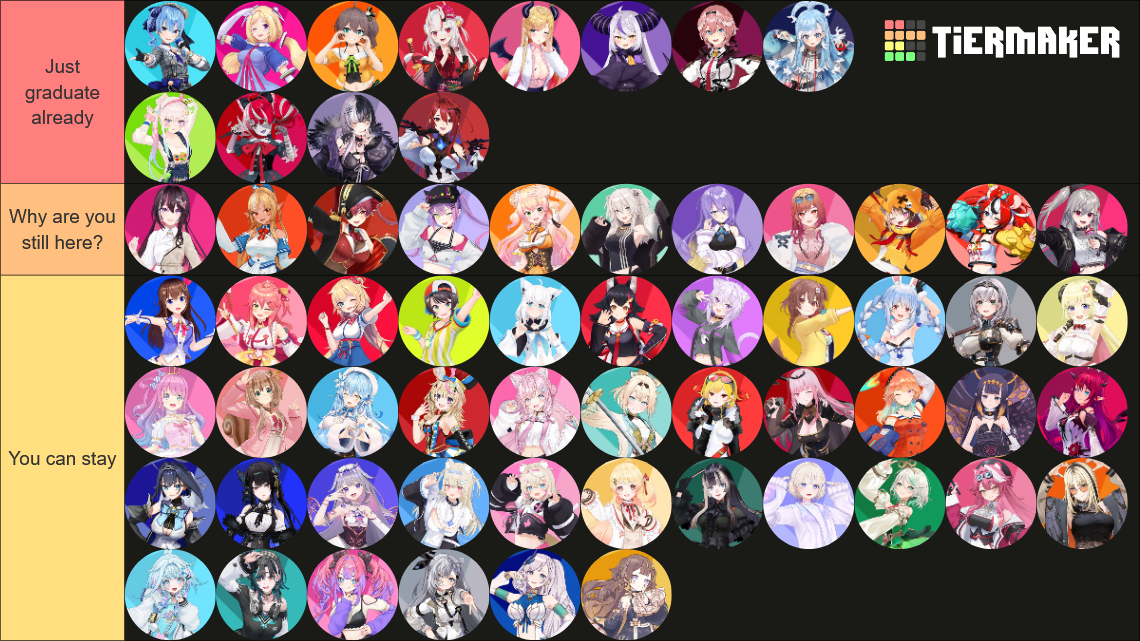 >>108434892move everyone down to "you can stay", move OP's oshi to "just graduate already".