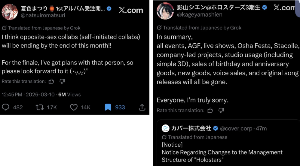 Now everything lined up, Holostars was draining Hololive’s budget for years, and some of the girls started feeling it wasn’t fair.Matsuri was the only one who stood out to announce that she wouldn't collab with Holostars anymore, including all other male vtubers.It gave stress to the management, and they finally decided to split the finances between Holostars and Hololive.